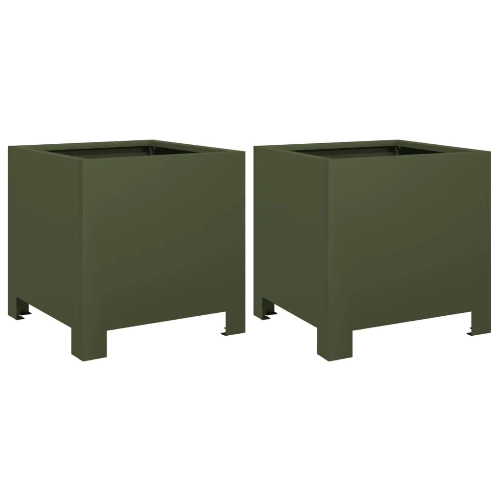 vidaXL dārza puķu kastes, 2 gab., olīvu zaļas, 30x30x30 cm, tērauds