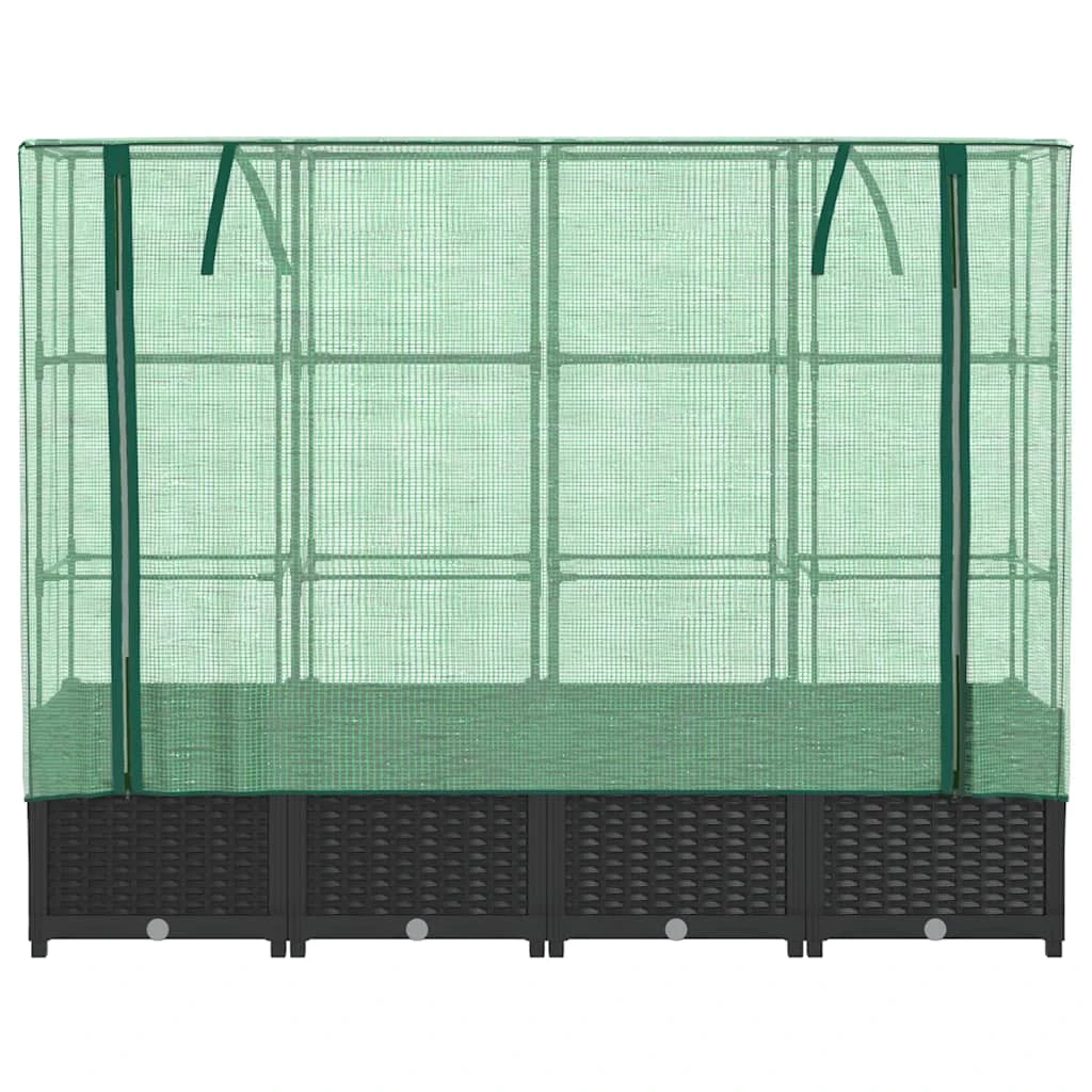 vidaXL augstā puķu dobe ar siltumnīcas pārsegu, rotangpalmas imitācija, 160x40x138 cm
