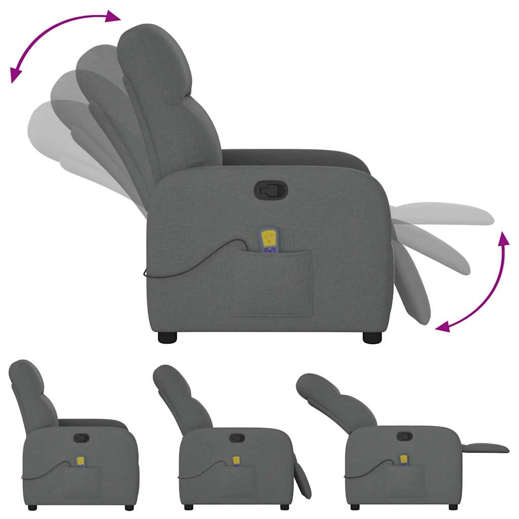 vidaXL masāžas krēsls, atgāžams, tumši pelēks audums