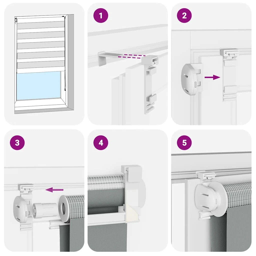 - Divi montāžas veidi: Jūs varat piestiprināt zebras rullo žalūziju pie sienas vai loga ar skrūvēm vai bez urbšanas, izmantojot skavas kronšteinus, atkarībā no jūsu vajadzībām.