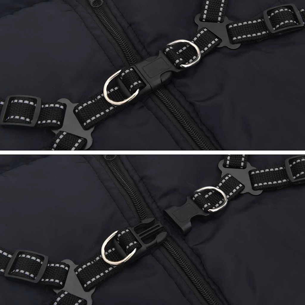- Regulējamas jostas: šim suņu pastaigu mētelim ir regulējamas siksnas, kas nodrošina perfektu piegulšanu, nodrošinot maksimālu komfortu.