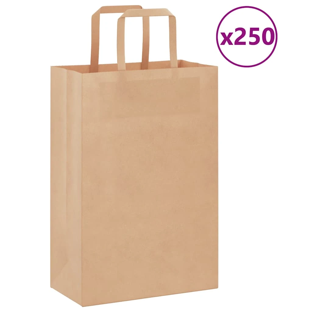vidaXL papīra maisiņi 250 gab. ar rokturiem, brūni, 21x11x31 cm