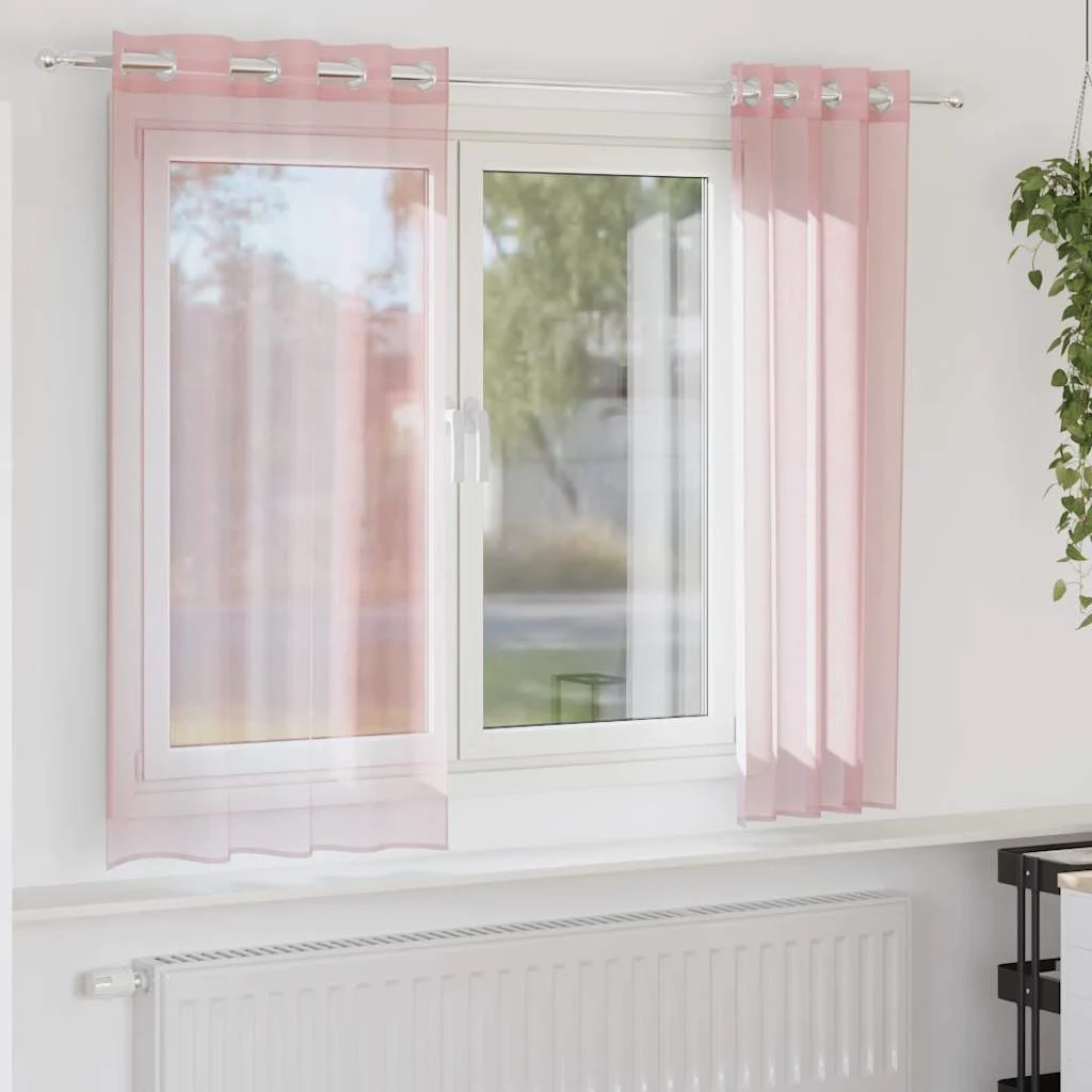 vidaXL voile aizkari ar starplikām, 2 gab., gaiši rozā, 140x175 cm
