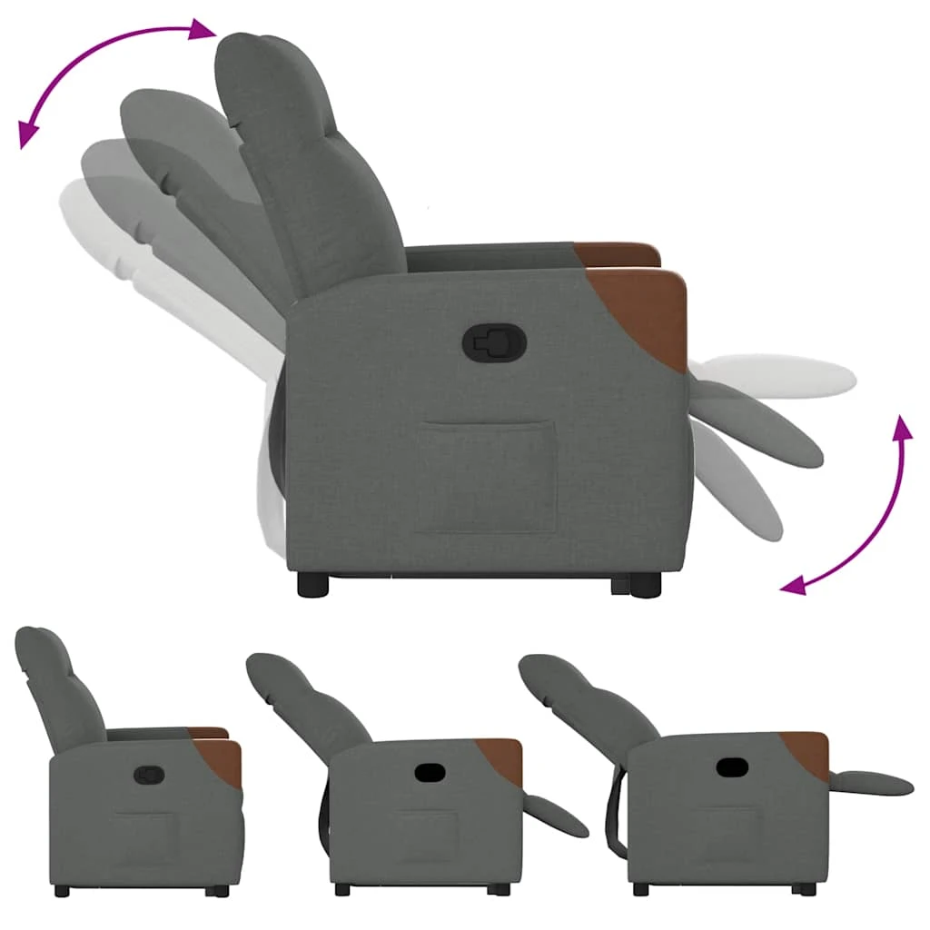vidaXL atpūtas krēsls, paceļams, atgāžams, tumši pelēks audums