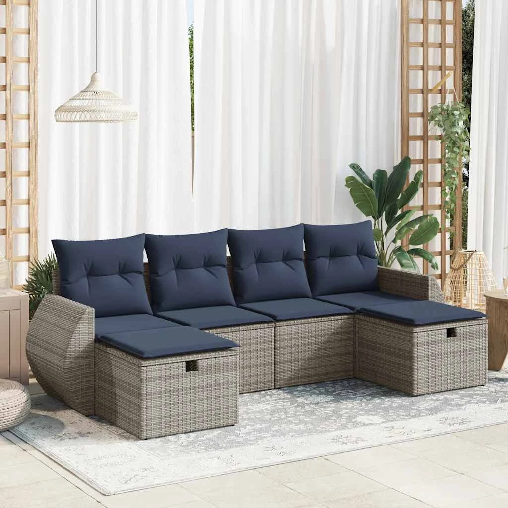 vidaXL 6-daļīgs dārza dīvāna komplekts ar matračiem, pelēks PE pinums