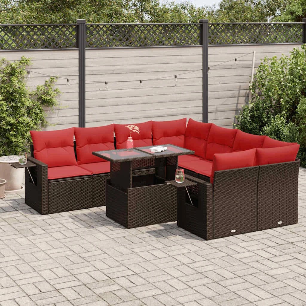 vidaXL 9-daļīgs dārza dīvāna komplekts ar matračiem, brūns PE pinums