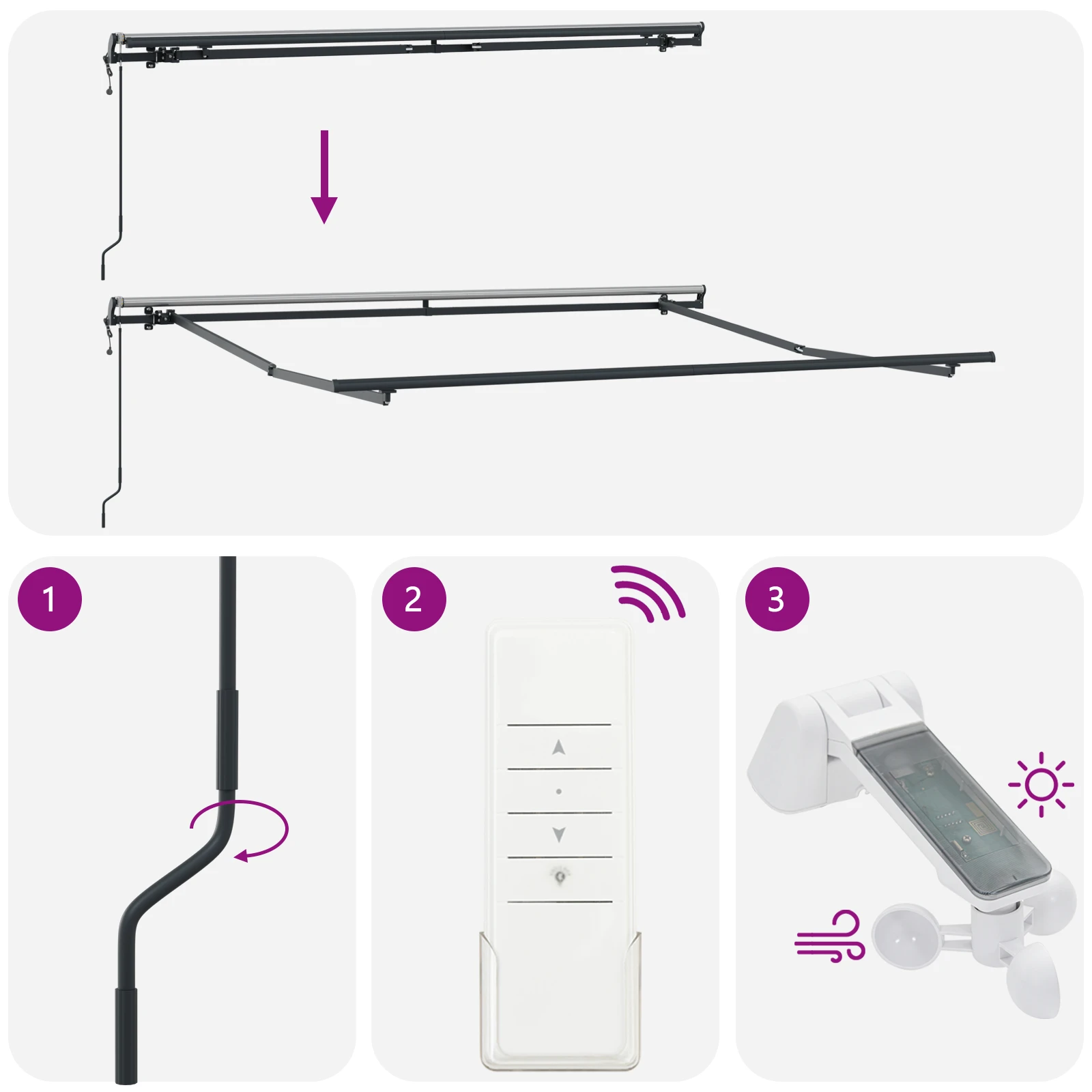 - Vienkārša paplašināšana: Šī nojume ir izstrādāta ar atsaucamu mehānismu, ļaujot ātri regulēt ēnu pēc nepieciešamības. Manuālais mehānisms nodrošina ātru pielāgošanu, kamēr tālvadības pults sniedz vieglumu no attāluma, padarot to draudzīgu visām vecuma grupām.