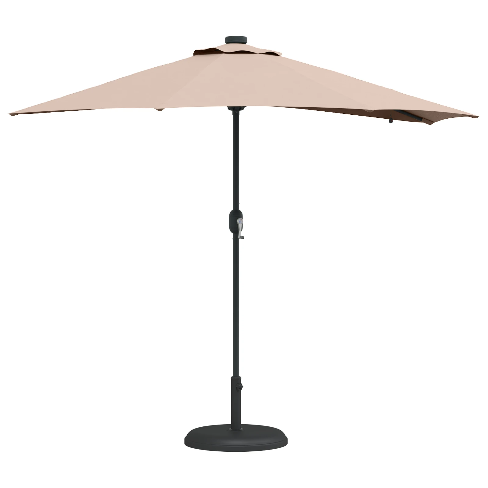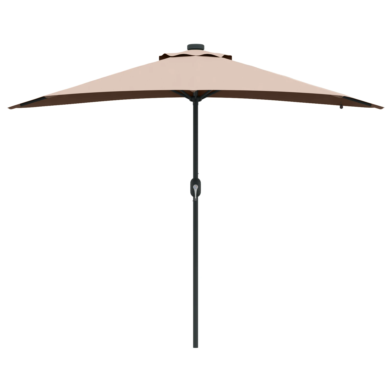 - LED gaismas: Aprīkots ar ērtiem LED sloksnes gaismas elementiem, šis lietussargs izgaismo jūsu āra pasākumus naktī. Saules enerģijā darbinātās LED ir videi draudzīgas un rada patīkamu gaismu, kas lieliski der vakara pavadīšanai ārā.