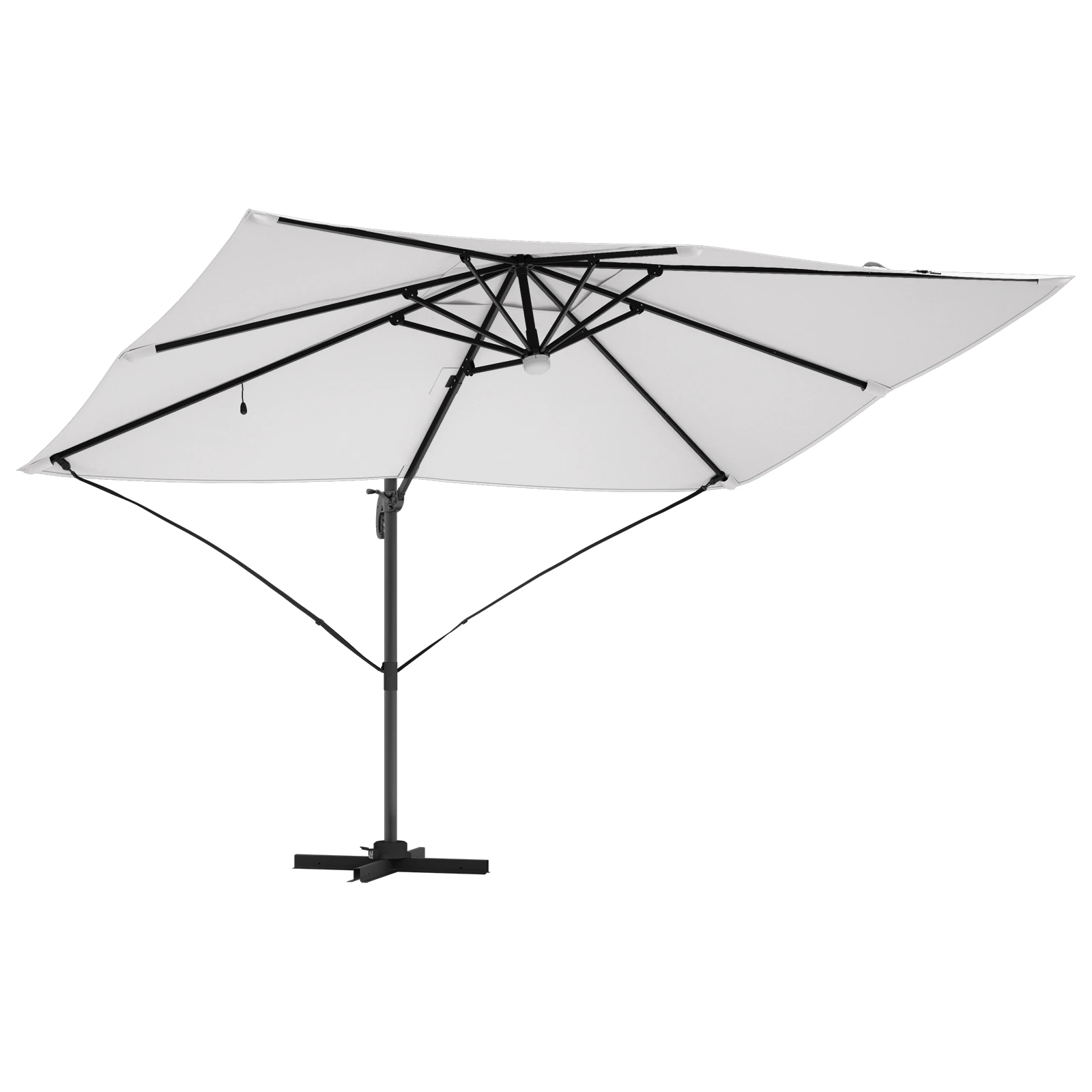 - Viegla rotācija un slīpums: Ar 360° rotējošu pamatu, šis lietussargs pielāgojas jebkurai saules pozīcijai. Tas ļauj jums regulēt leņķus, lai maksimāli palielinātu ēnu visās vietās.