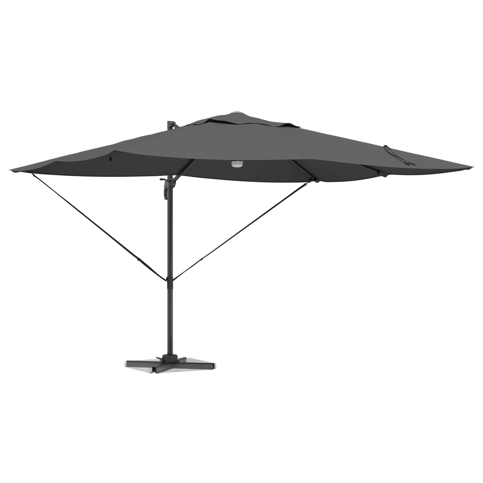 - Viegla rotācija un slīpums: Ar 360° rotējošu pamatu, šis lietussargs pielāgojas jebkurai saules pozīcijai. Tas ļauj jums regulēt leņķus, lai maksimāli palielinātu ēnu visās vietās.