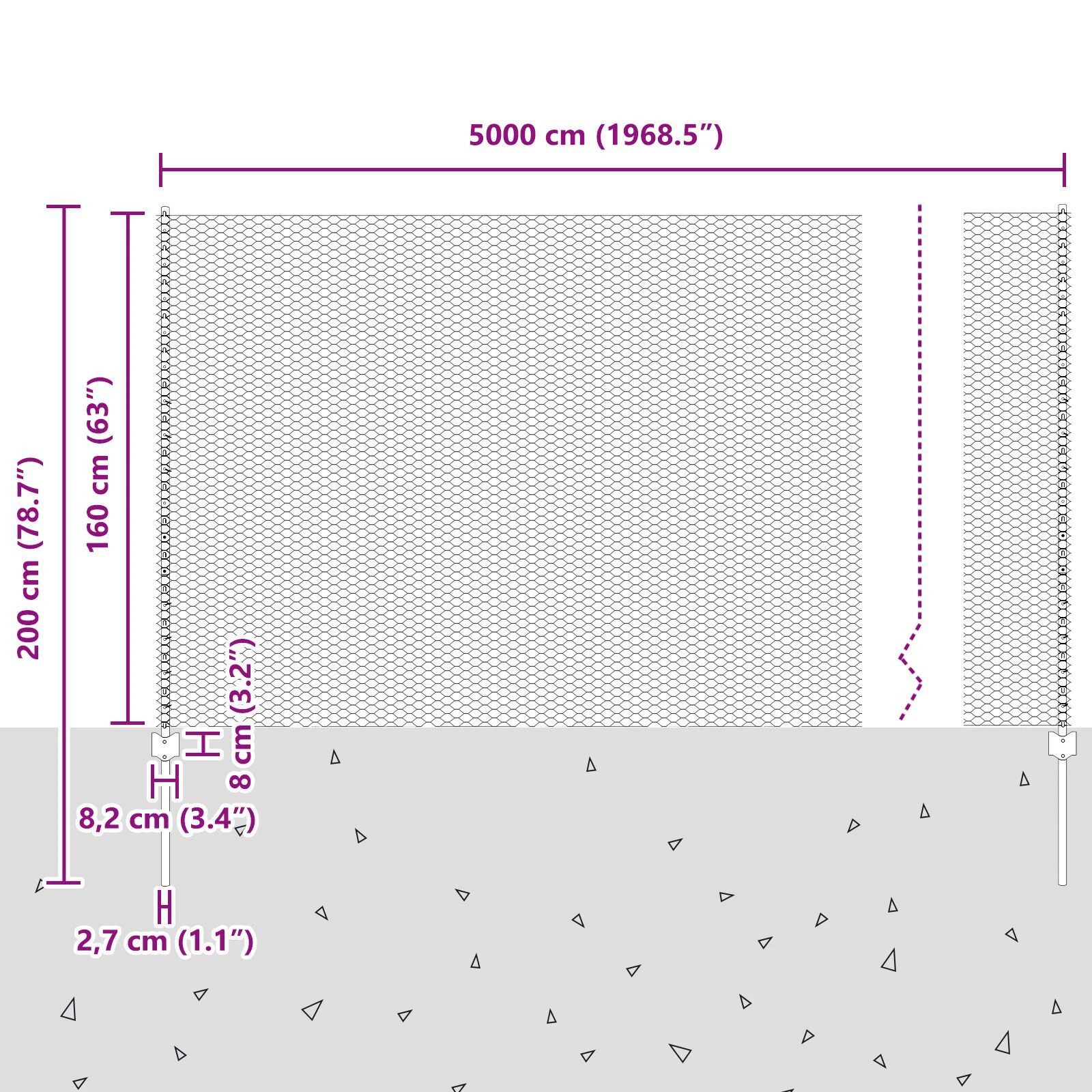 vidaXL Žogs ar stabu Pelēka 1,6 x 50 m Tērauds un PVC