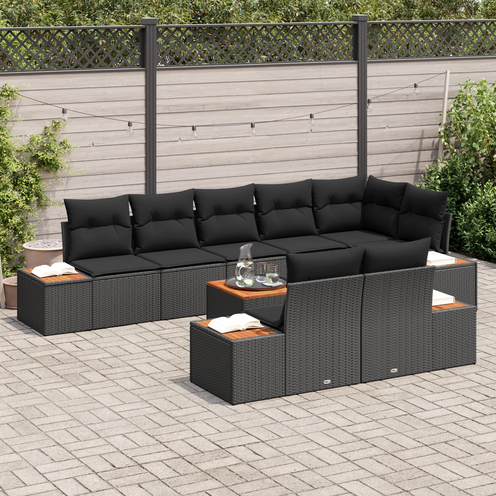 vidaXL Dārza dīvānu komplekts 9 pcs Melna Poliūtu rotangpalma