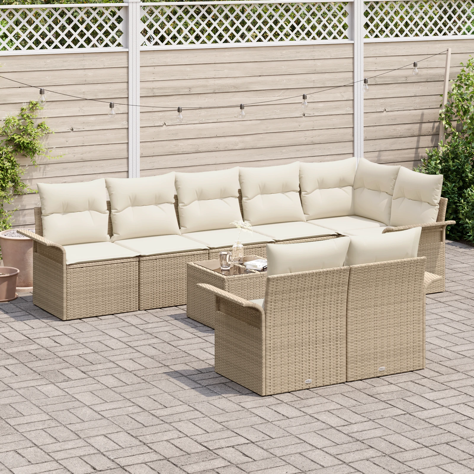 vidaXL Dārza dīvānu komplekts ar uzglabāšanu 9 pcs Bēša poliratāns