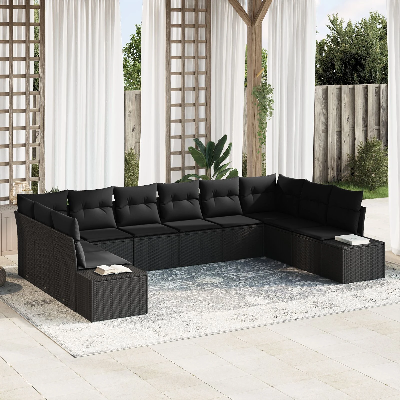 vidaXL Dārza dīvānu komplekts ar spilvenu 10 pcs Melna Polirāts