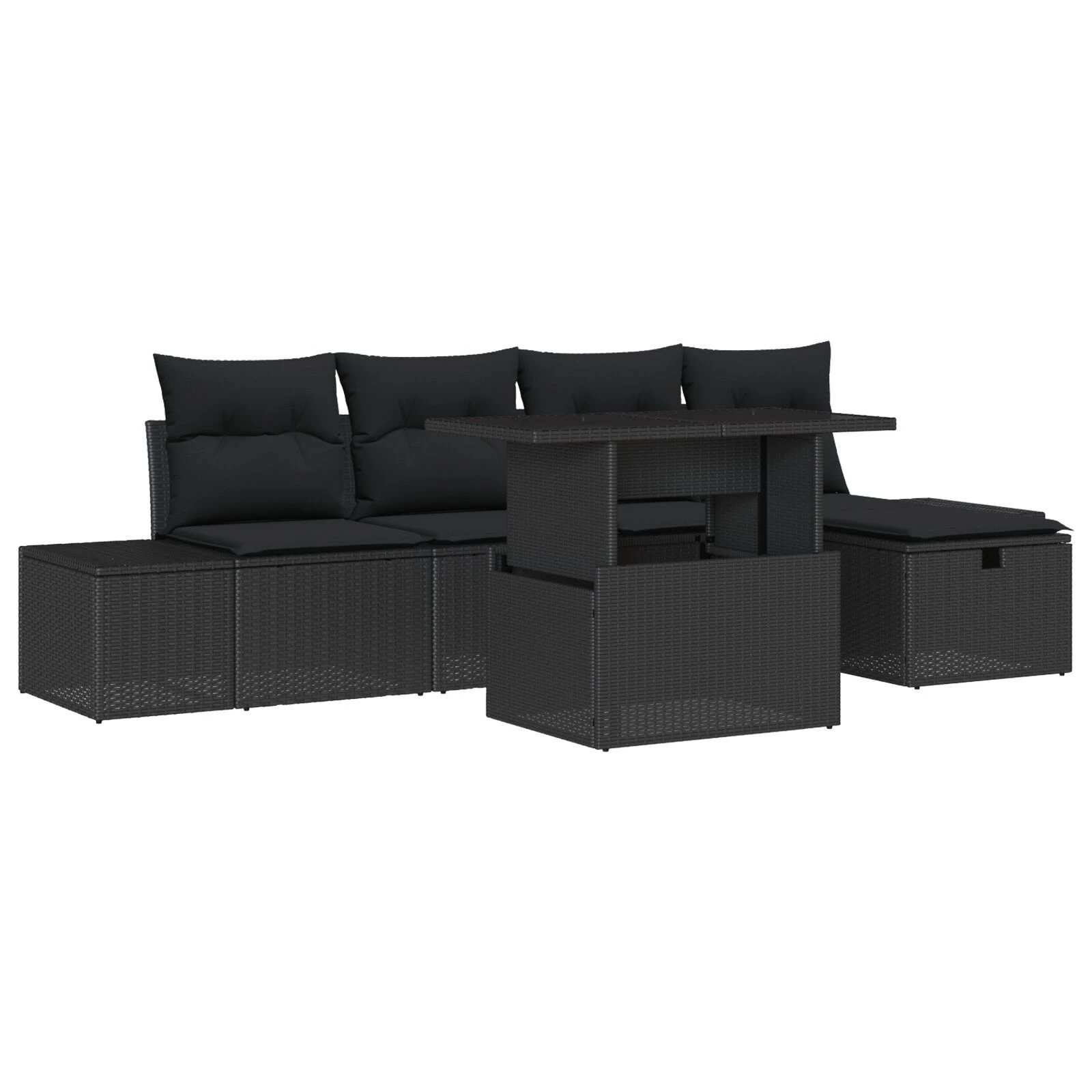 vidaXL Dārza dīvānu komplekts 6 pcs Melna Poliūtu rotangpalma