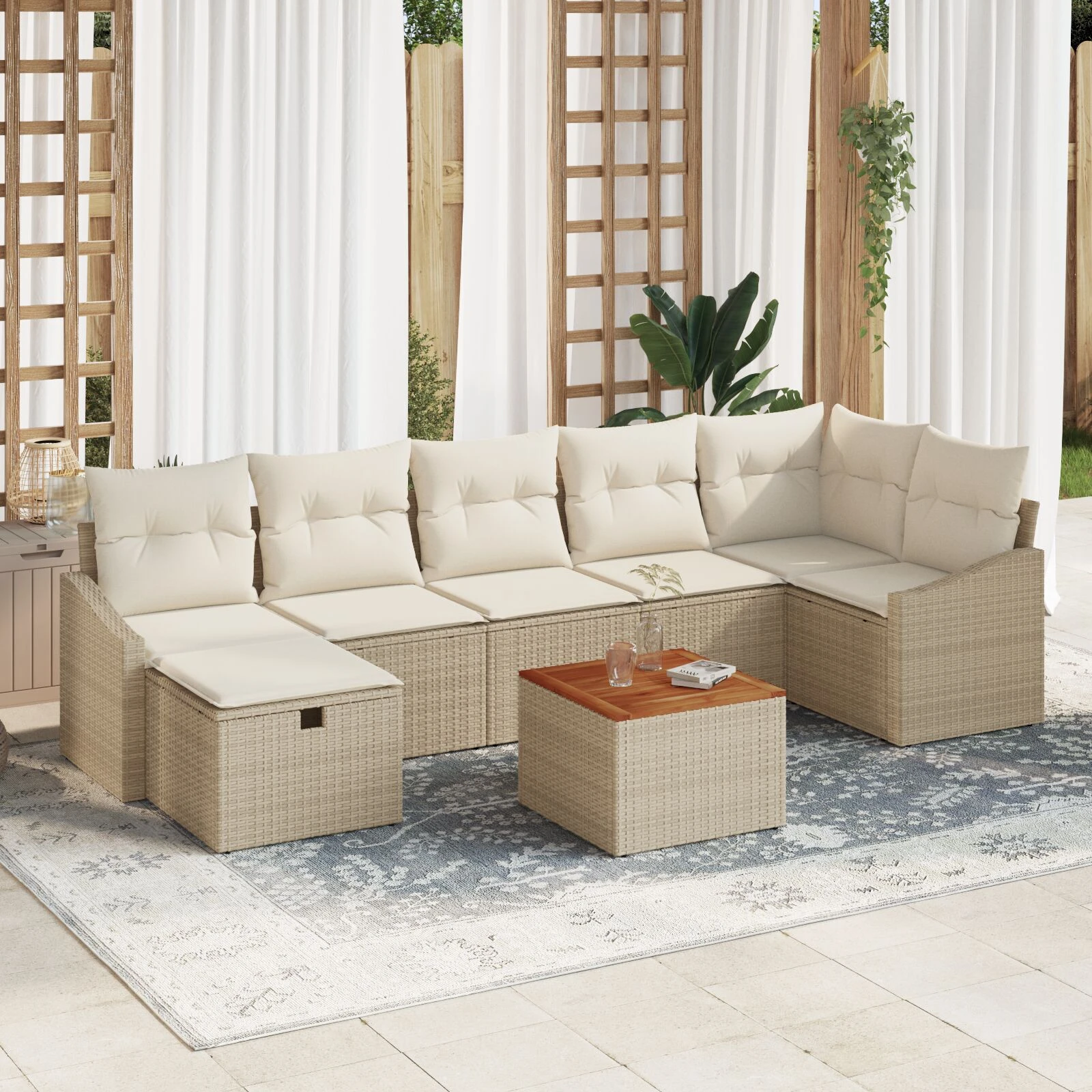 vidaXL Dārza dīvānu komplekts 8 pcs Bēša Poliūtu rotangpalma