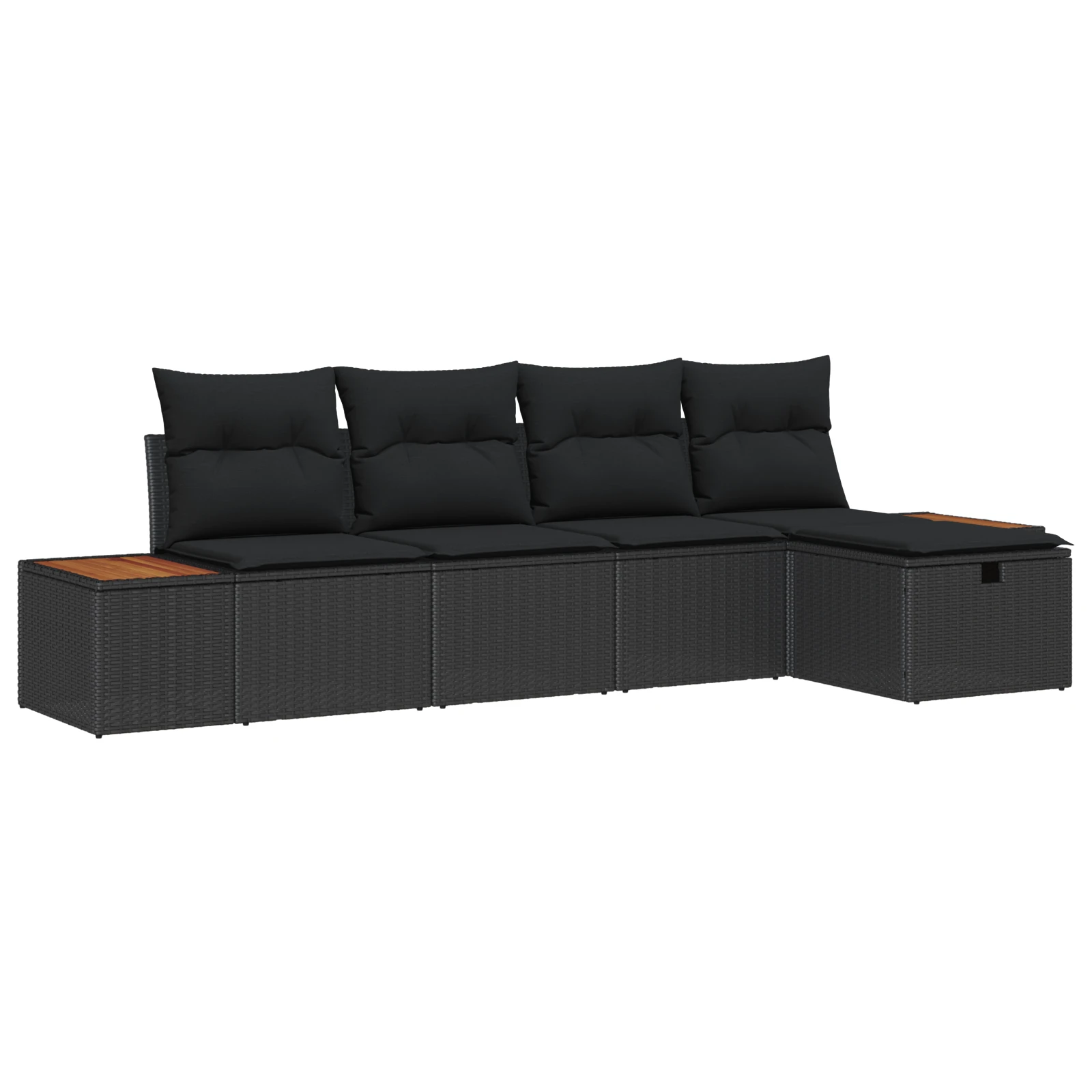vidaXL Dārza dīvānu komplekts 5 pcs Melna Poliūtu rotangpalma