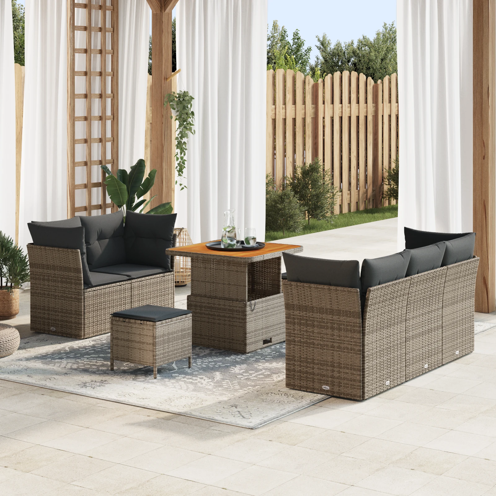 vidaXL Dārza dīvānu komplekts ar spilvenu 8 pcs Pelēka poliratāns