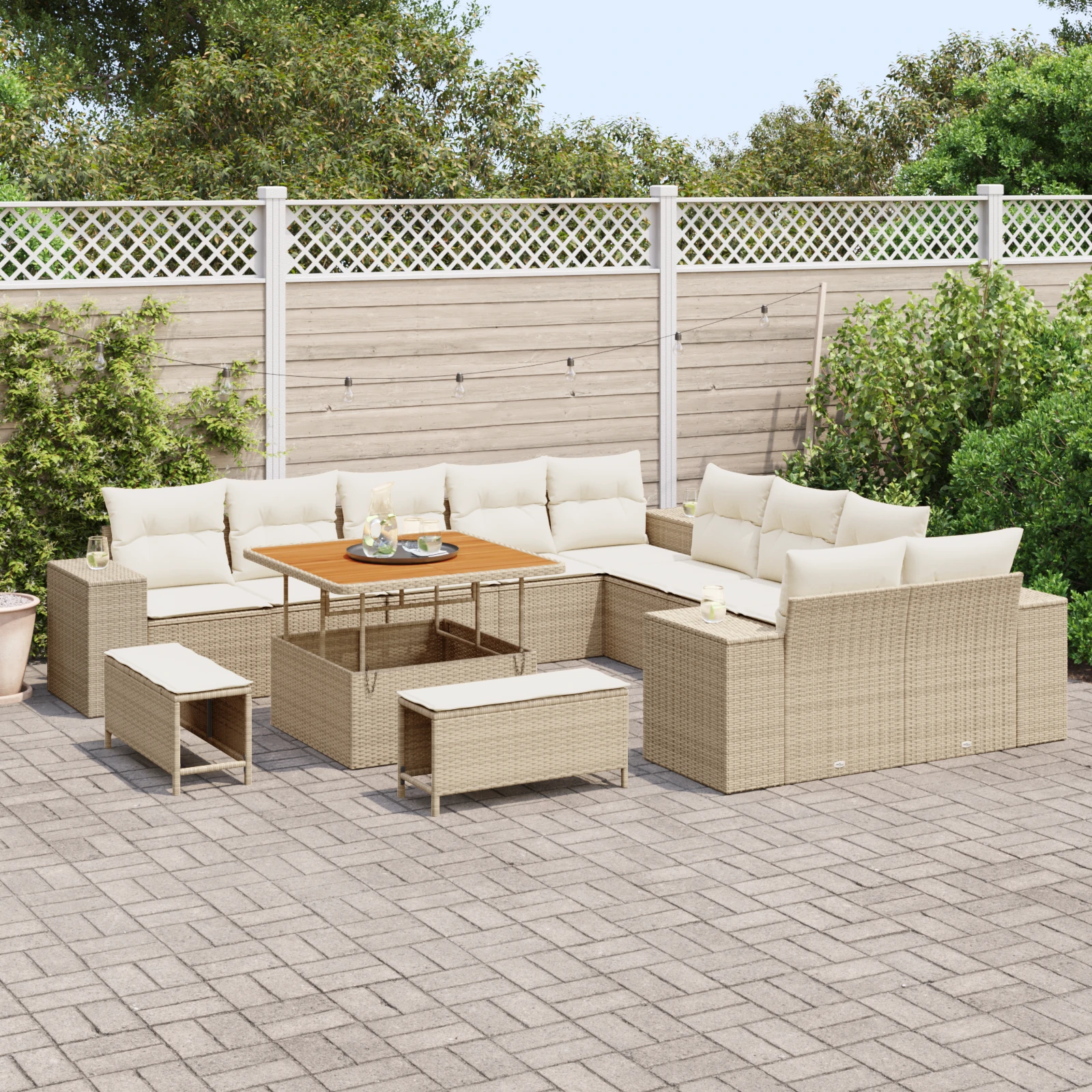 vidaXL Dārza dīvānu komplekts ar spilvenu 13 pcs Bēša poliratāns