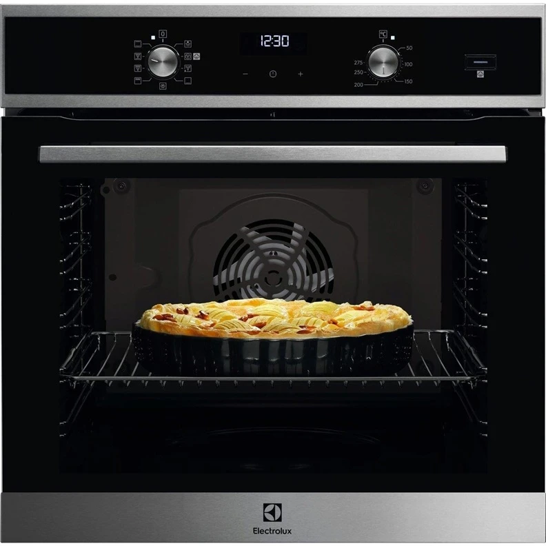 Preču zīmols - Electrolux. Kolekcija - „SteamBake“. Modelis - EOD5F71X. Platums - 59.6 cm. Dziļums - 56.9 cm. Augstums - 59.4 cm. Krāsa - Melna. Svars - 28.3 kg. Korpusa materiāls - Metāls. Energoefektivitātes klase - A. Jauda - 2990 W. Cepeškrāsns tips - SteamBake. Elektriskā. Cepeškrāsns tilpums - 72 l. Cepeškrāsns durvju stiklu skaits - 2. Cepeškrāsns maksimālā temperatūra - 275 °C. Cepeškrāsns funkciju skaits - 9. Cepeškrāsns funkcijas - Cepeškrāsns apgaismojums. Mitrā konvekcijas cepšana. Karstā gaisa plūsma / Karstā gaisa plūsma PLUS. Apakšējā + Augšējā sildīšana / Katalītiskā tīrīšana. Apakšējā sildīšana. Ātrā grila funkcija. Turbo grils. Picas programma. Atkausēšana. Ar apgaismojumu - Jā. Grils - Jā. Konvekcija - Jā. Termostats - Jā. Tīrīšanas veids - Katalītiskā pašattīrīšanās sistēma. Ekrāns - Jā. Taimeris - Jā. Vadība - Sensoru. Elektroniskā. Teleskopiskie sliedes - 1 līmenis. Cepšanas plātņu skaits - 1. Bērnu drošības funkcija - Nē. Restes skaits - 1. Pieslēguma kabelis - Jā. Vads ar spraudni - Jā. Termometrs ēdiena gatavošanai - Jā. Garantija - 24 mēn. Papildu informācija - „SteamBake“ - ideāli piemērots cepumiem. Cepot pat vairākas plāksnes vienlaicīgi, ēdieni tiek cepti vienmērīgi un ātri. Papildu ventilatora sildīšanas elements nodrošina vienmērīgu karstā gaisa izplatīšanos visos trīs līmeņos. Tehnoloģija „Even Cooking“ izplata siltumu visā cepeškrāsnī, tāpēc ēdiens tiek cepts vienmērīgi un to nav nepieciešams apgriezt. Šī tehnoloģija ātrāk uzsilda cepeškrāsni un ietaupa ne tikai laiku, bet arī elektroenerģiju! Vienkārši noņemamas durvis. Viegli izņemami stikli. Pateicoties katalītiskajam pārklājumam, varat aizmirst par cepeškrāsnī uzkrājušos taukiem un ēdiena netīrumiem. Šī pašattīrīšanās funkcija ir aktīva, kad cepeškrāsns uzsilst līdz 250 °C temperatūrai, tāpēc cepeškrāsns tīrīšana ir īpaši vienkārša.