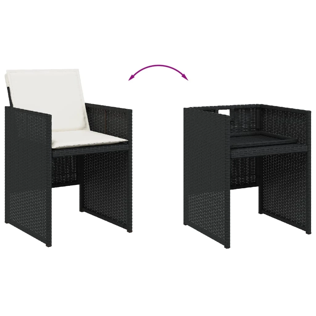 vidaXL 9-daļīgs dārza mēbeļu komplekts, matrači, melns, PE rotangpalma