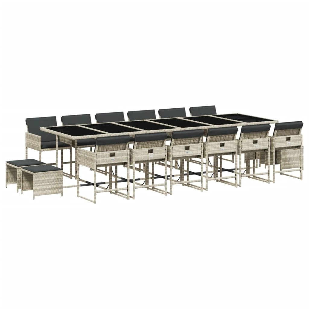 vidaXL 17-daļīgs dārza mēbeļu komplekts ar matračiem, gaiši pelēka PE