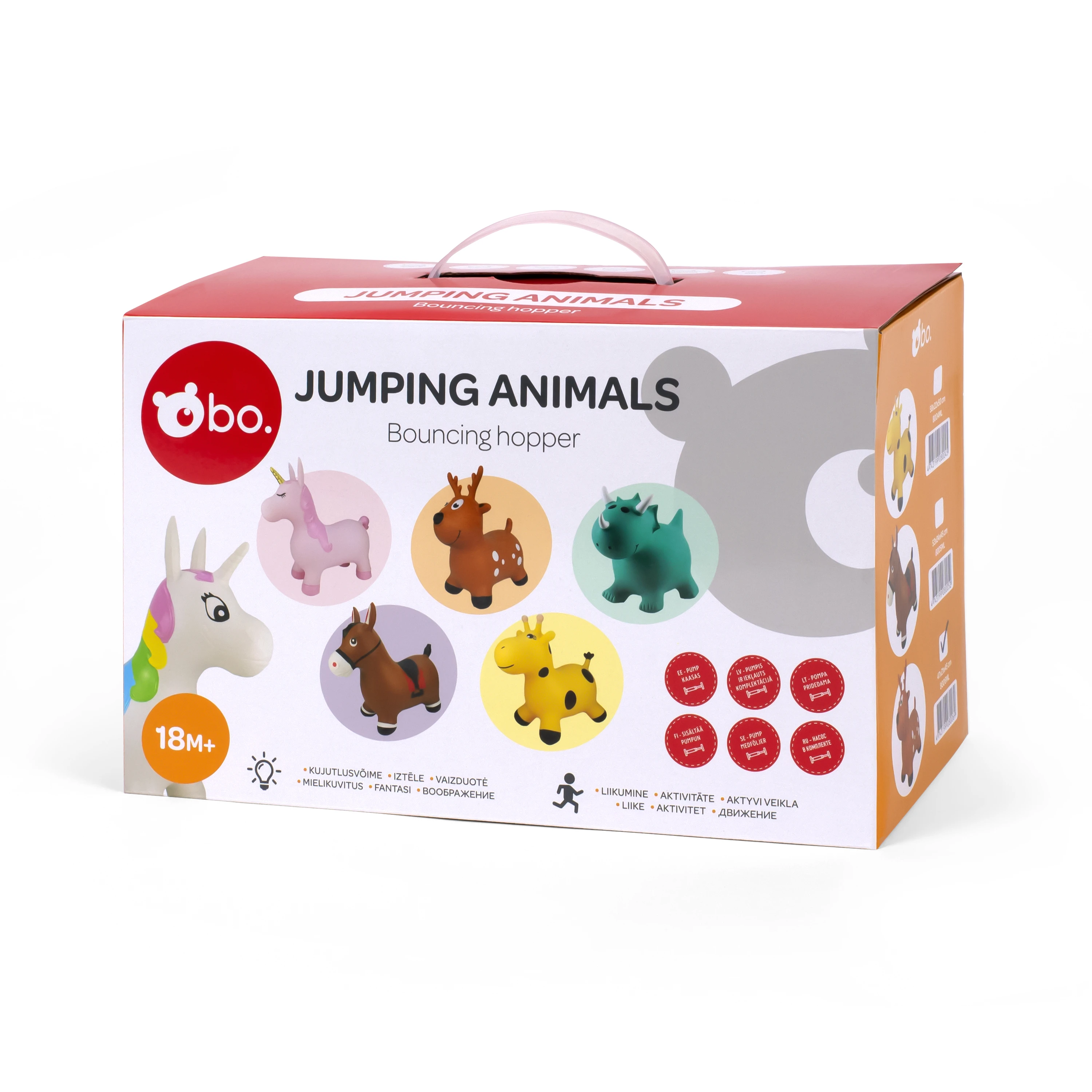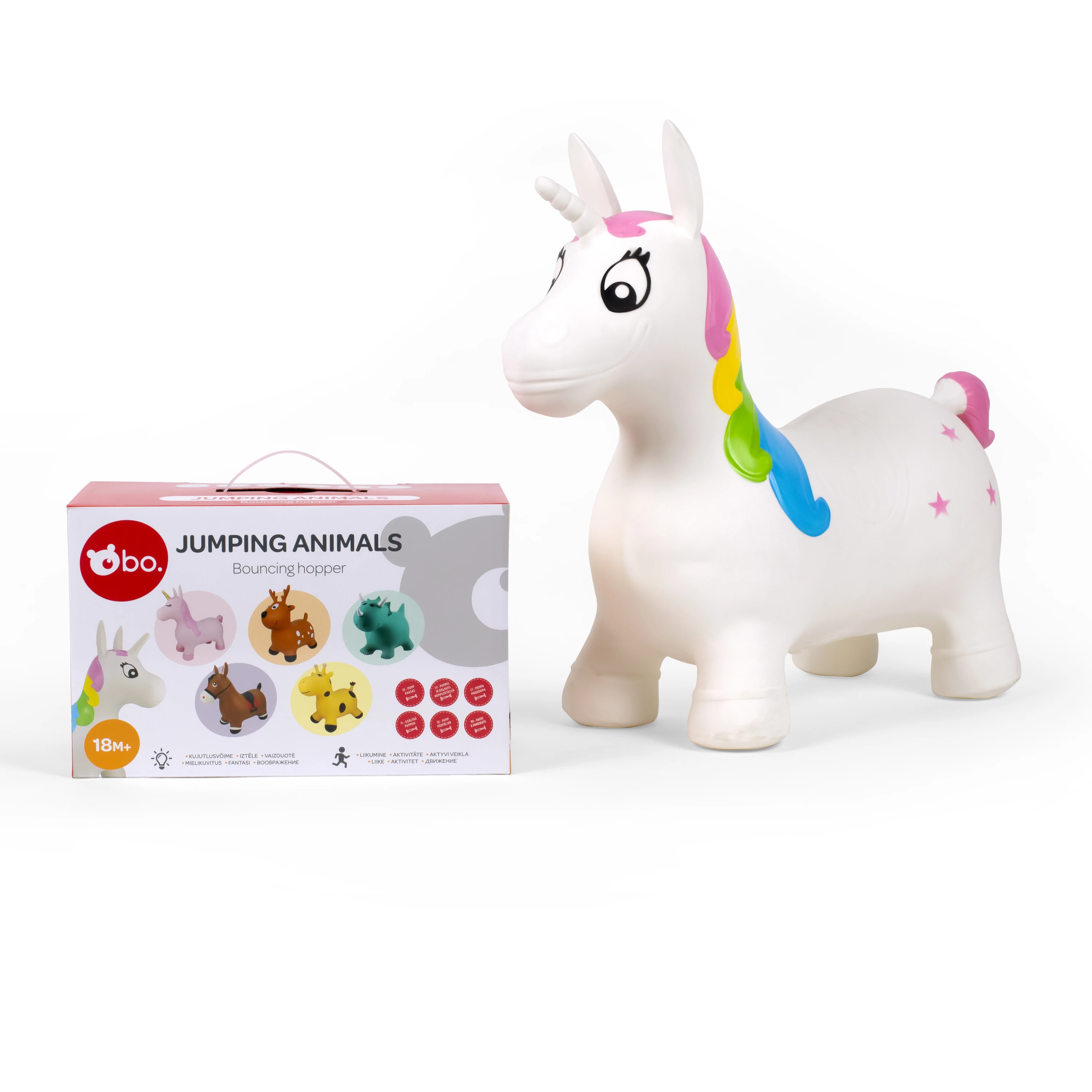 bo. Lēkājošie dzīvnieki, kas veicina fizisko aktivitāti un jautrā veidā attīsta labāku līdzsvaru. Dzīvniekiem ir lielas ausis vai ragi, lai tos būtu viegli satvert, un izturīgas kājas, lai lēkāšana būtu stabila! Var izmantot jautrai lēkāšanai gan telpās, gan ārā. Izvēlieties sev tīkamāko un lēkājiet prom! Pumpis ir iekļauts komplektā. Maksimālais svars - 50 kg.