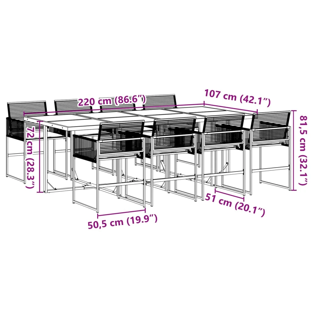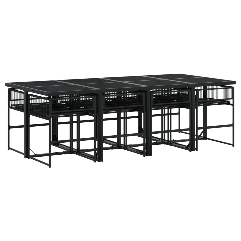 vidaXL 9-daļīgs dārza mēbeļu komplekts, matrači, melns, PE rotangpalma