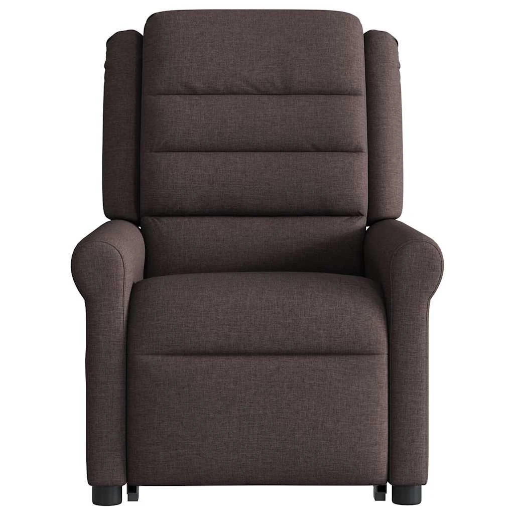 vidaXL masāžas krēsls, paceļams, atgāžams, tumši brūns audums