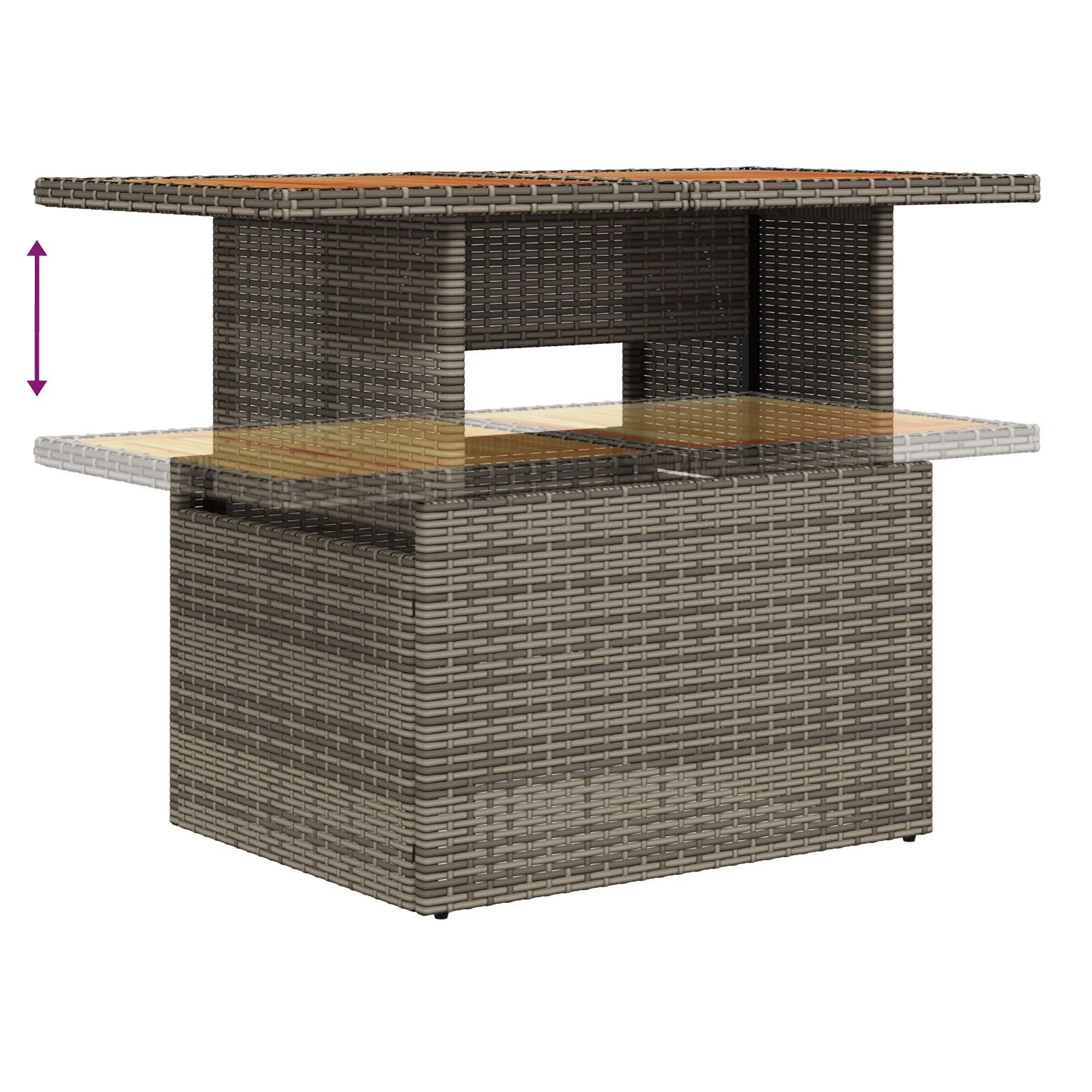 - Augstas kvalitātes materiāli: Šis ēdamistabas komplekts ir izgatavots no augstas kvalitātes poli rotangpalmas, kas pazīstama ar moderno stilu un izturību. Pulverkrāsotā tērauda un masīvkoka akācijas konstrukcija nodrošina stabilu struktūru, kas nodrošina stabilitāti pret ārējiem spēkiem un laikapstākļiem, kamēr apvienotie materiāli piedāvā patiesi dabisku pievilcību.