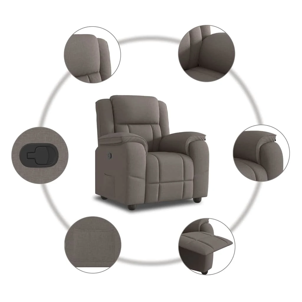 vidaXL atpūtas krēsls, atgāžams, pelēkbrūns audums