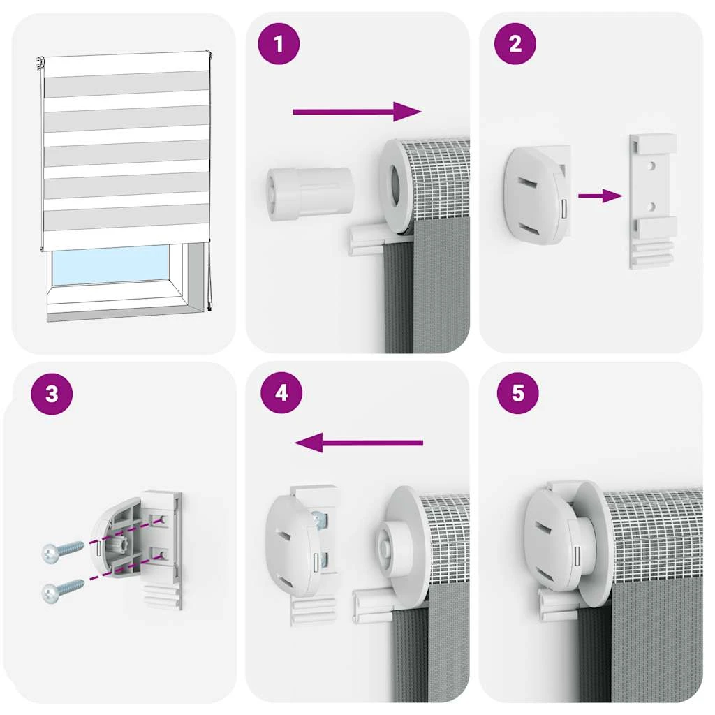 - Divi montāžas veidi: Jūs varat piestiprināt zebras rullo žalūziju pie sienas vai loga ar skrūvēm vai bez urbšanas, izmantojot skavas kronšteinus, atkarībā no jūsu vajadzībām.