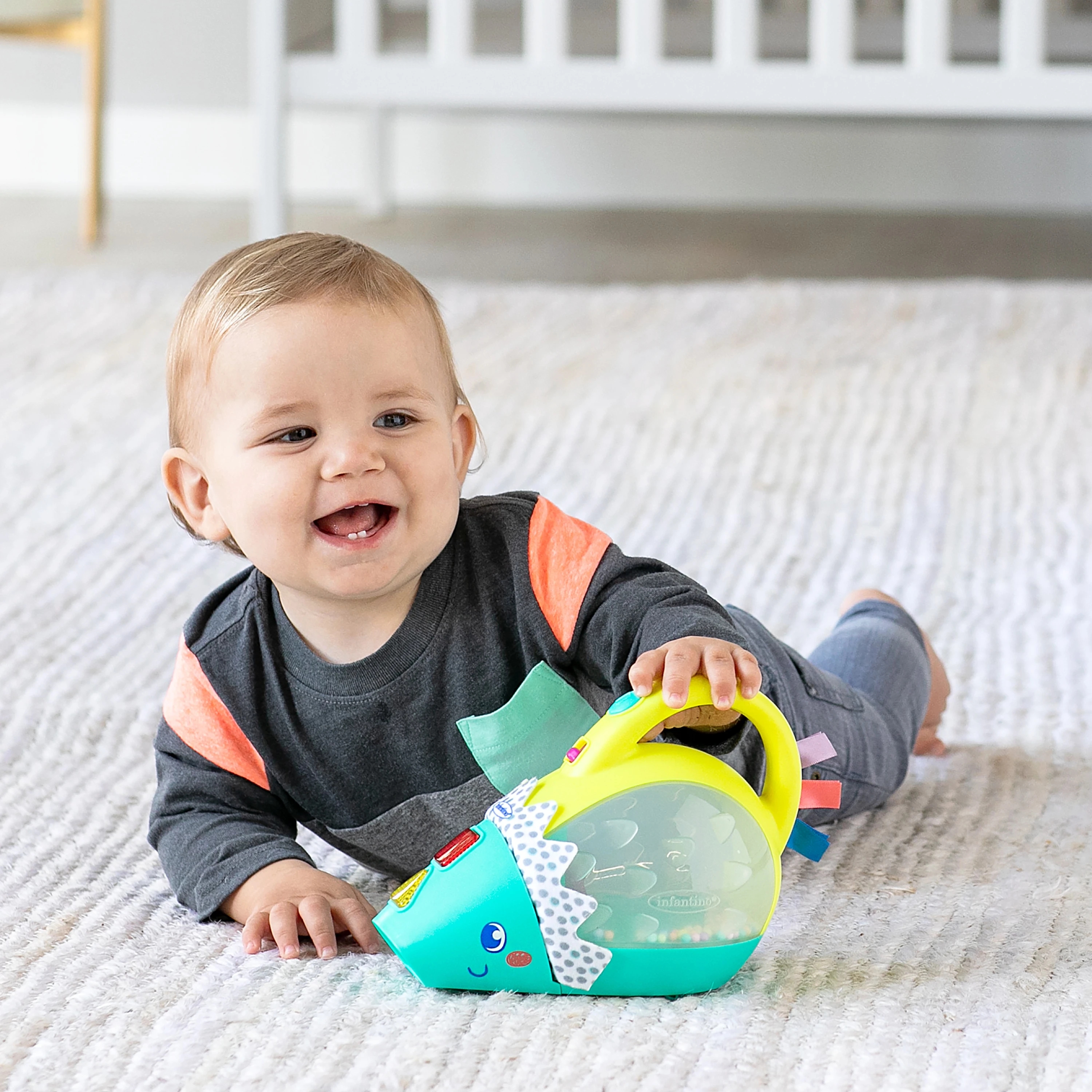 Novērtējiet šīs klasiskās rotaļlietas jauno variantu! Ar vienkāršu un pārdomātu eža dizainu, kas iedegas, rada skaņas un atskaņo kvalitatīvu mūziku, šis "mini-putekļsūcējs" ļaus jautri pavadīt laiku, vienlaikus jūsu mazulis attīstīs rupjās motorikas prasmes. Vienkāršā, intuitīvā konstrukcija ir ideāli piemērota mazajām rociņām. Panelis ar gaismiņām un lēkājošās bumbiņas putekļsūcēja tvertnē sniedz vizuālu un audio baudījumu rotaļāšanās laikā! Kvalitatīva elektronika Skaņu un gaismiņu vairāki režīmi. Nepieciešamas 3 AA baterijas (iekļautas komplektā). Piemērots bērniem no 6 līdz 12 mēnešu vecumam.