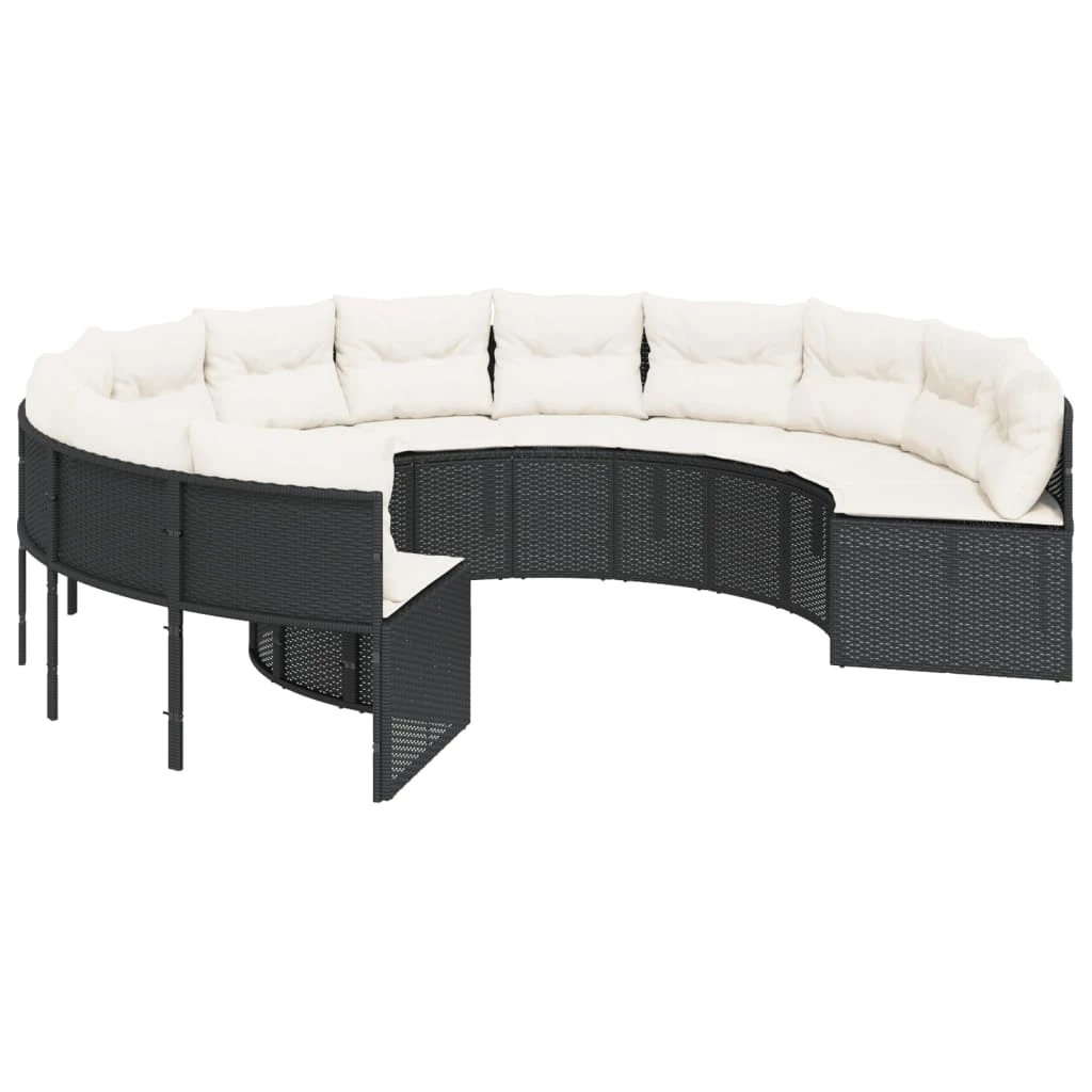 vidaXL dārza dīvāns ar galdiņu un matračiem apaļš melna PE rotangpalma