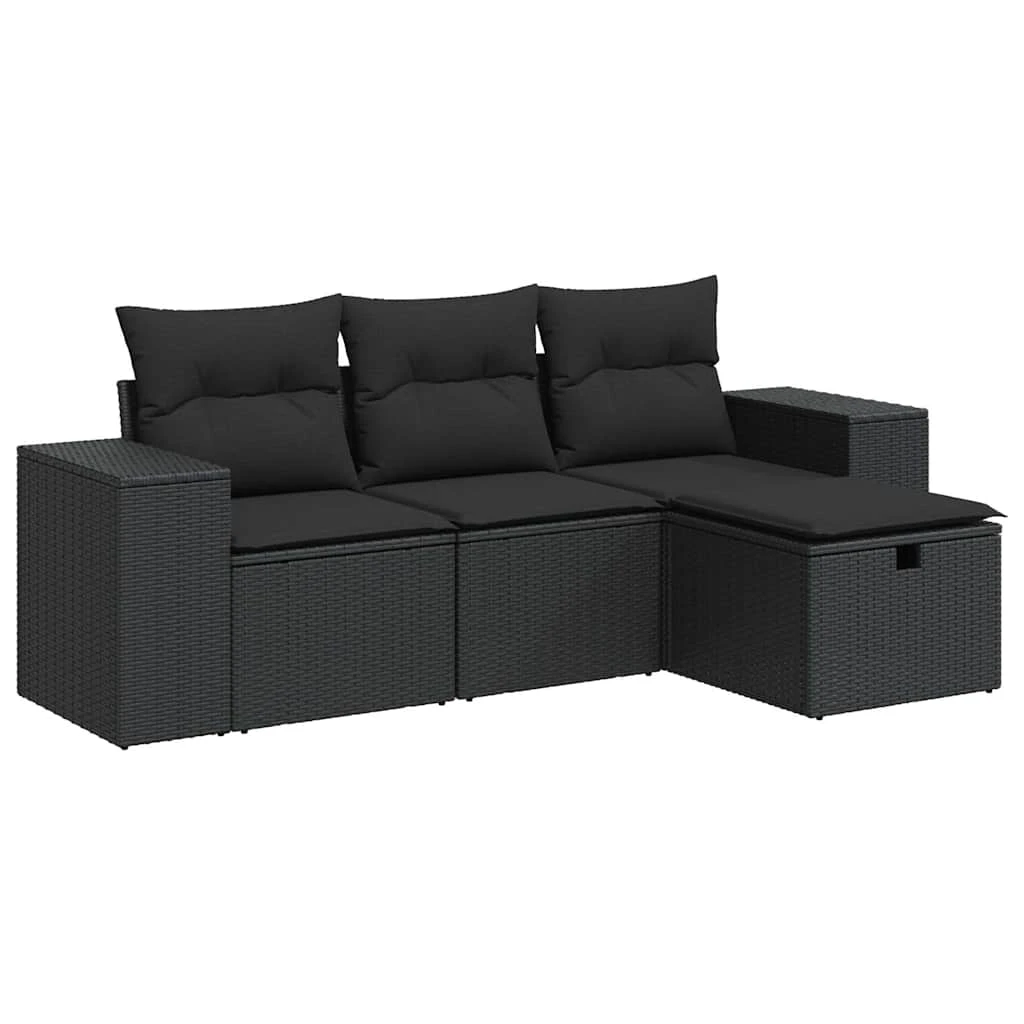 vidaXL 4-daļīgs dārza dīvāna komplekts ar matračiem, PE rotangpalma