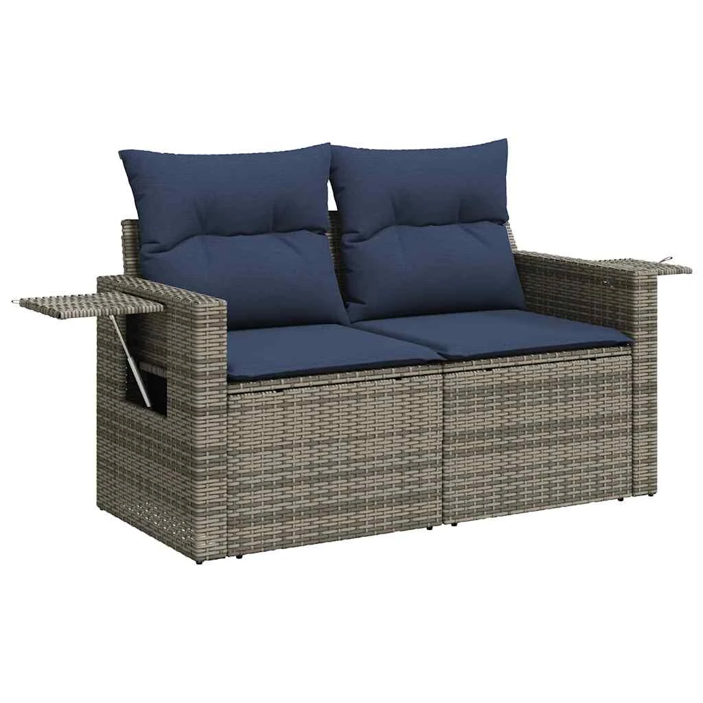 vidaXL 7-daļīgs dārza dīvāna komplekts, matrači, pelēka PE rotangpalma
