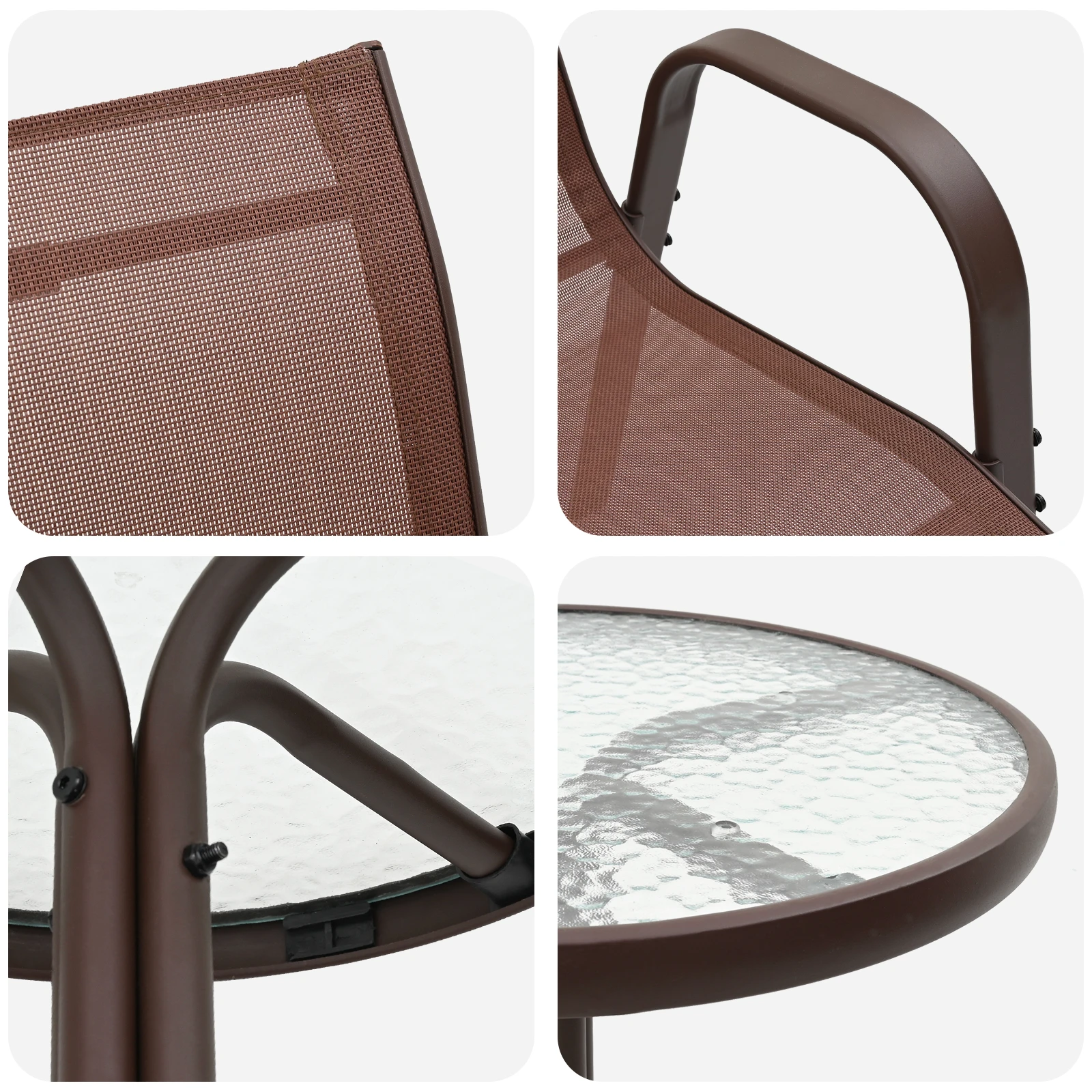 - Tērauda konstrukcija: Šis bistro komplekts ir izgatavots no izturīga tērauda, kas nodrošina lielu stiprumu un ilgmūžību. Metāla izturība garantē, ka jūsu mēbeles būs stabilas un drošas ilgtermiņā, un tas kopā ar rūsu necaurlaidīgām īpašībām sola mēbeles, kas iztur visus laikapstākļus.