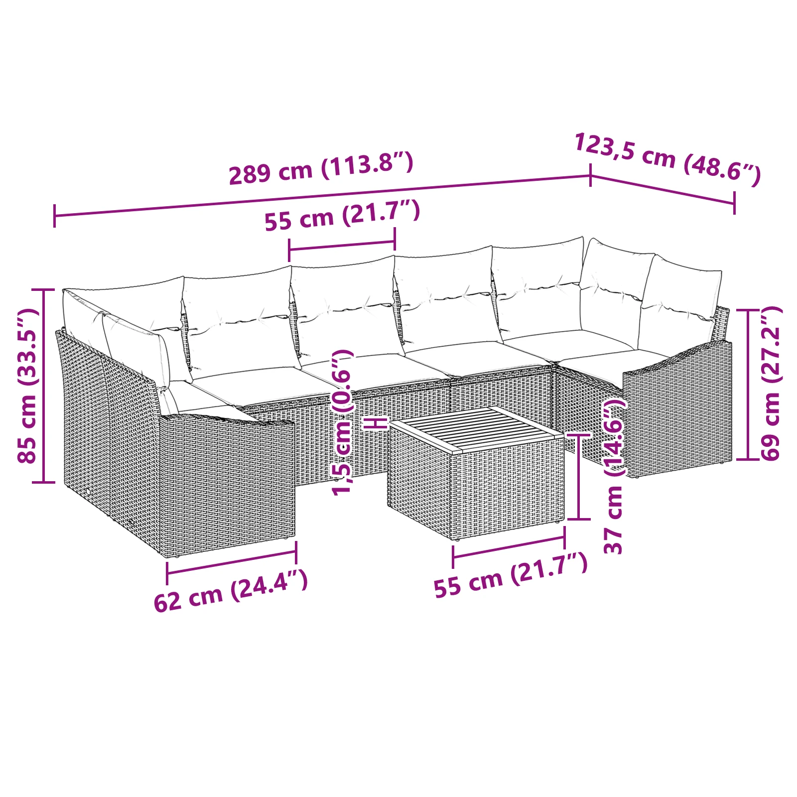 vidaXL Dārza dīvānu komplekts ar spilvenu 8 pcs Melna poliratāns