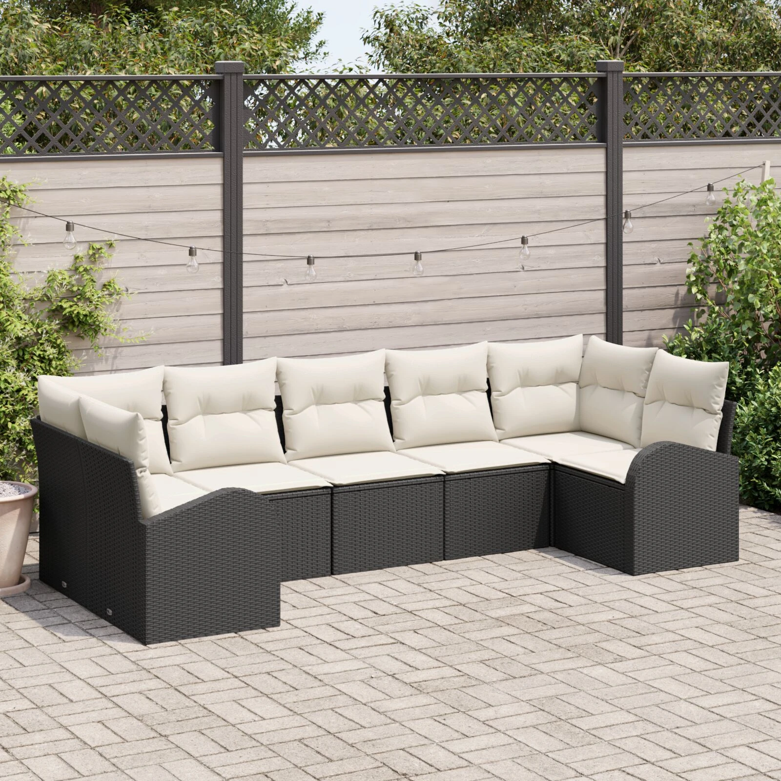 vidaXL Dārza dīvānu komplekts 7 pcs Melns un balts poliratāns