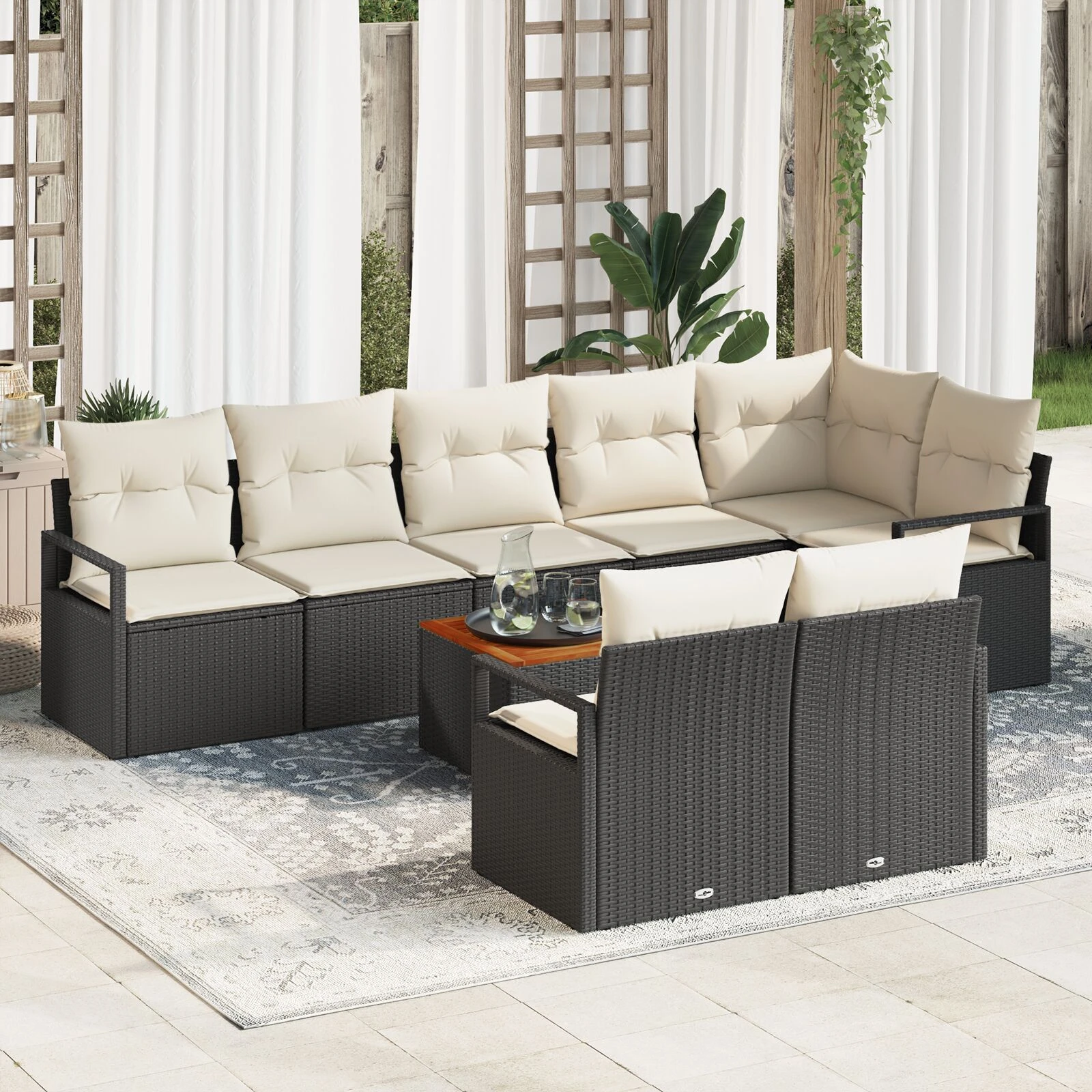 vidaXL Dārza dīvānu komplekts 9 pcs Melns un Krēmkrāsa poliratāns