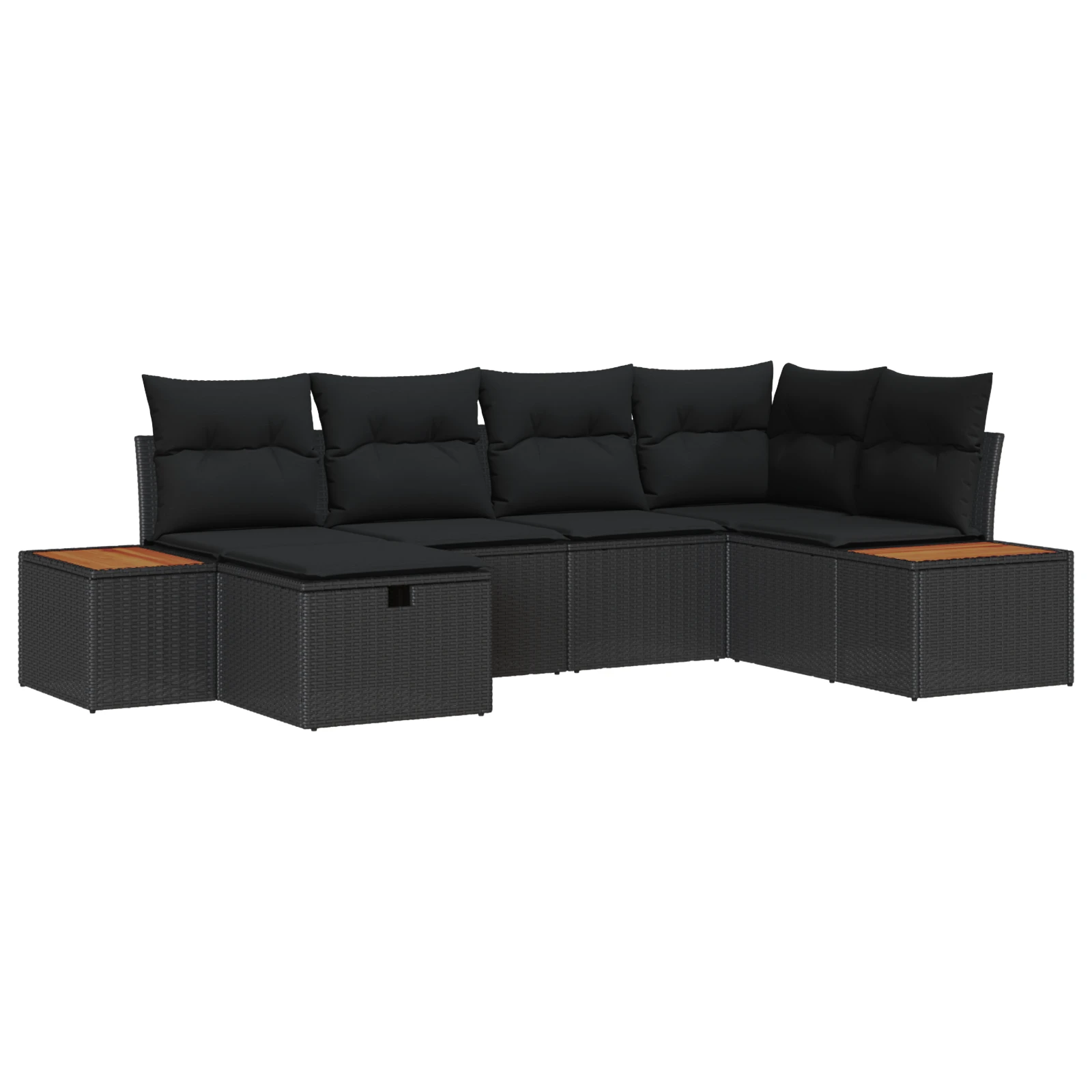 vidaXL Dārza dīvānu komplekts ar spilvenu 6 pcs Melna poliratāns