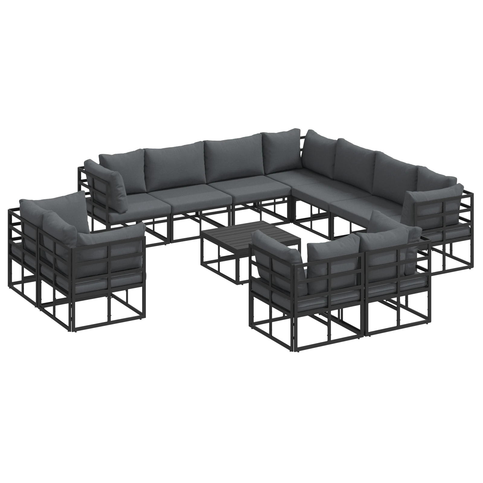 vidaXL Dārza dīvānu komplekts ar spilvenu 12 pcs Melna Alumīnijs