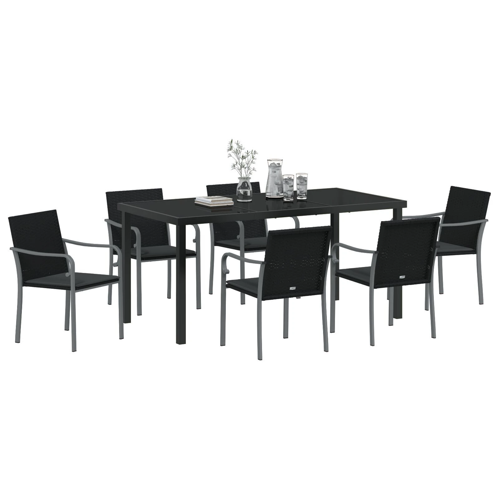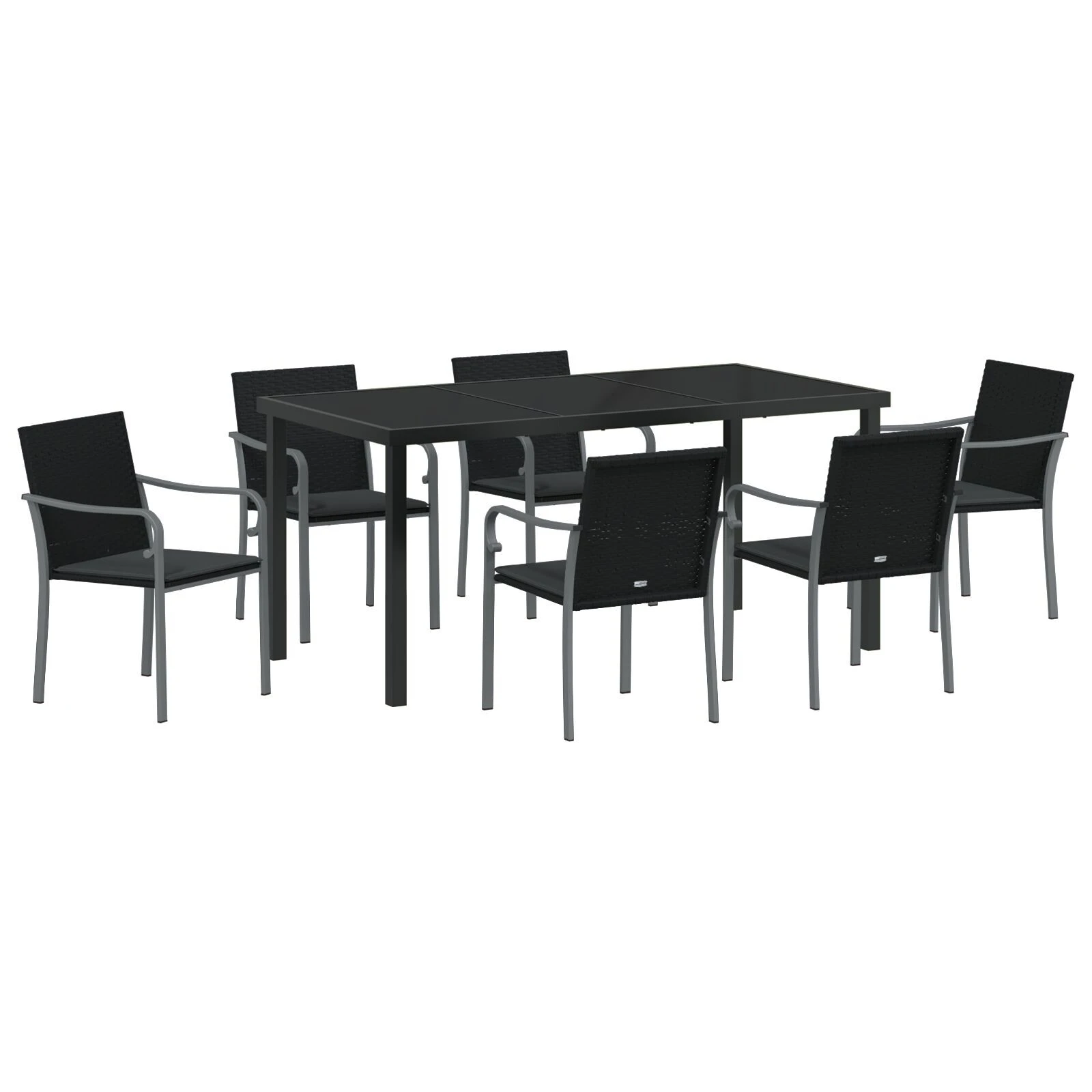 vidaXL Dārza ēdamgalds 7 pcs Melns un pelēks PE ratan