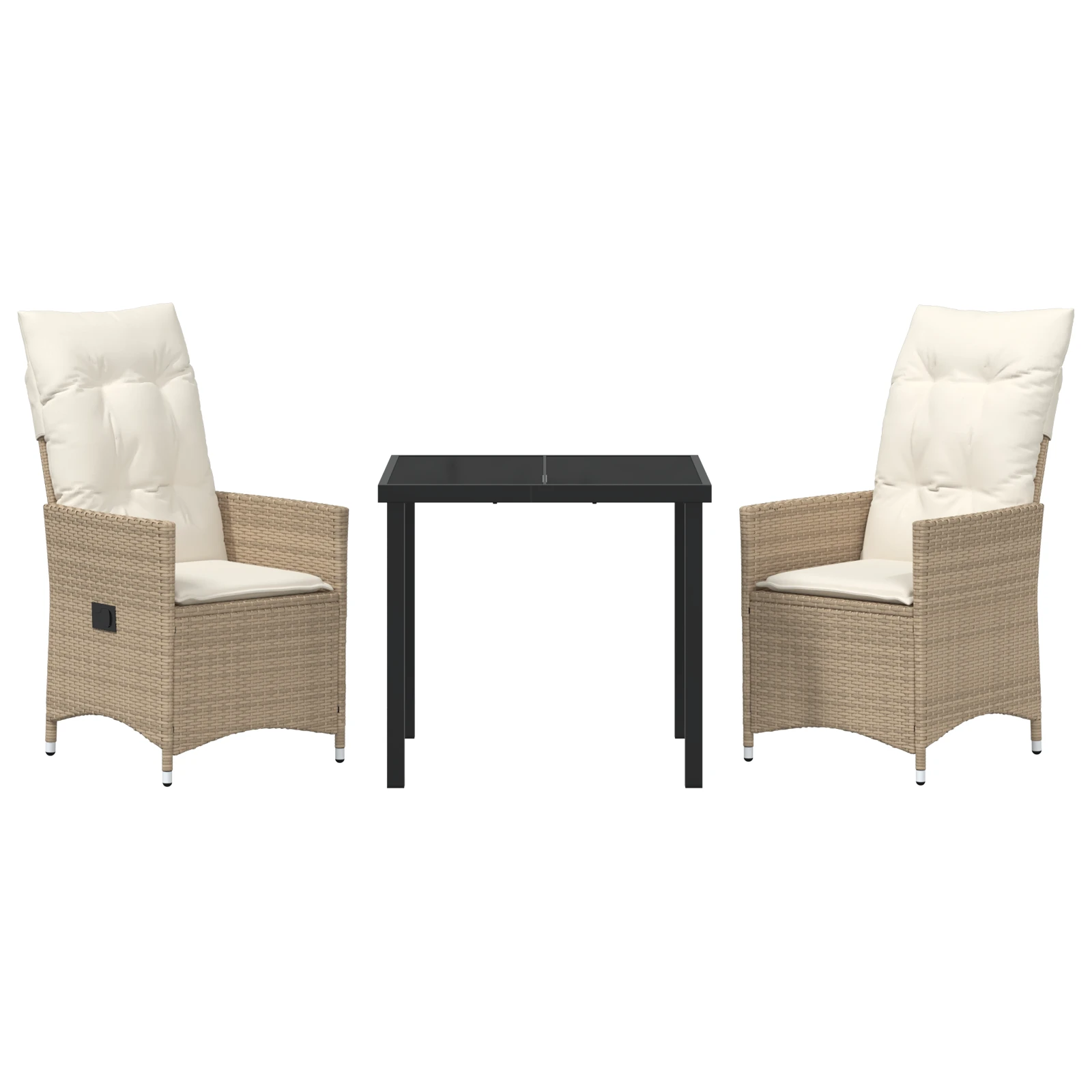 vidaXL Dārza ēdamgalds ar spilvenu 3 pcs Bēša poliratāns