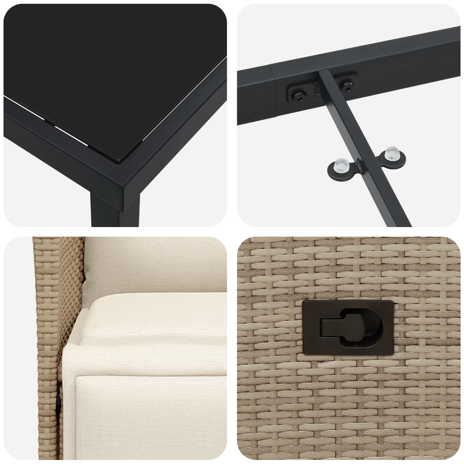 - Komponentu apskats Katrs šī komplekta elements, no polietilēna rotangpalmas roku balstiem līdz rūdītā stikla galdam, ir pārdomāti izstrādāts, lai uzlabotu komfortu un ēšanu. Manuāla regulēšana uzlabo elastību, kamēr plakanais roku balsts nodrošina relaksētu situāciju, padarot pasākumus stilīgus un ērtus.