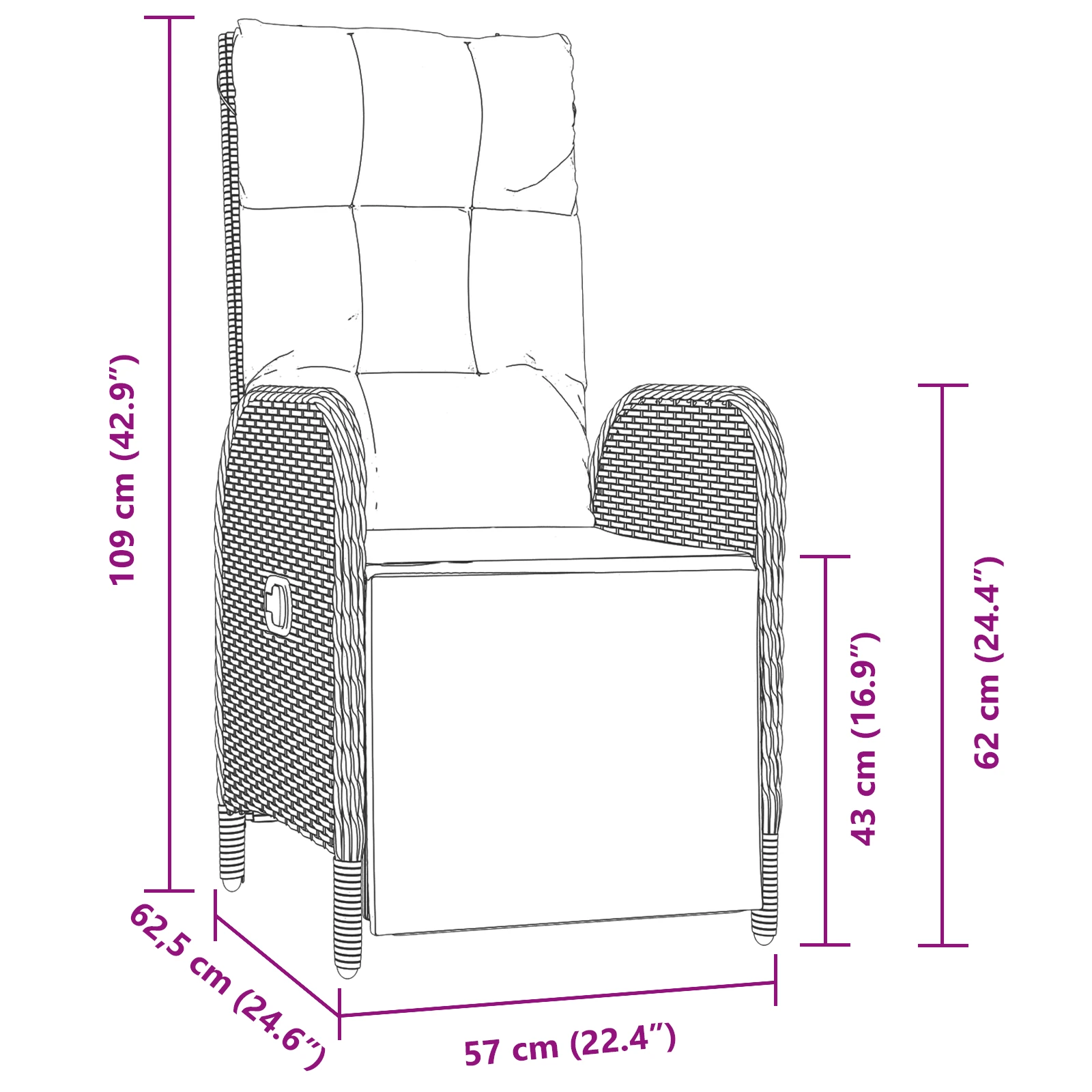 - 6 x Dārza krēsls: 57 x 62.5 x 109 cm (GarumsxPlatumsxAugstums)
