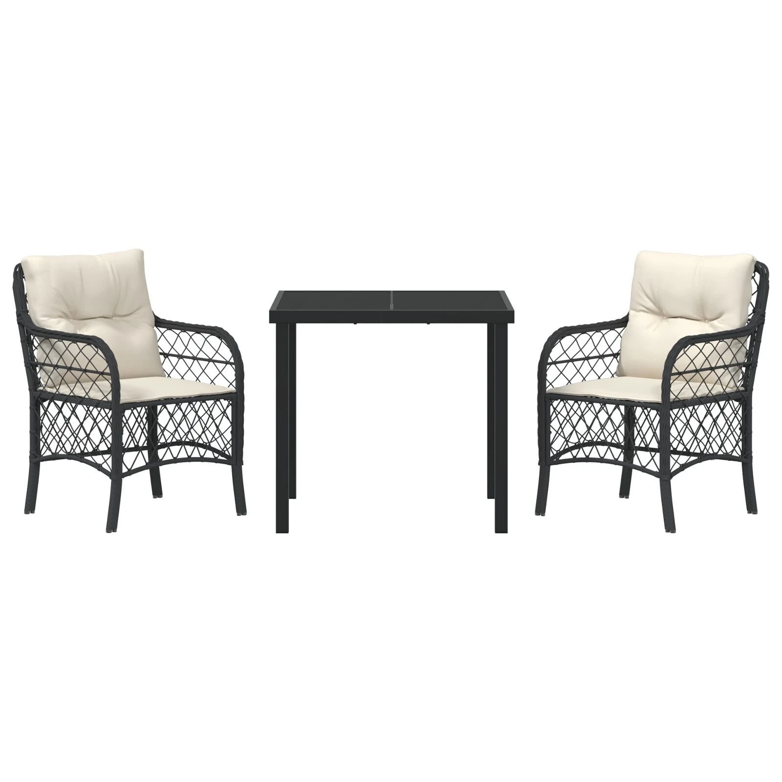 vidaXL Dārza ēdamgalds ar spilvenu 7 pcs Melna poliratāns