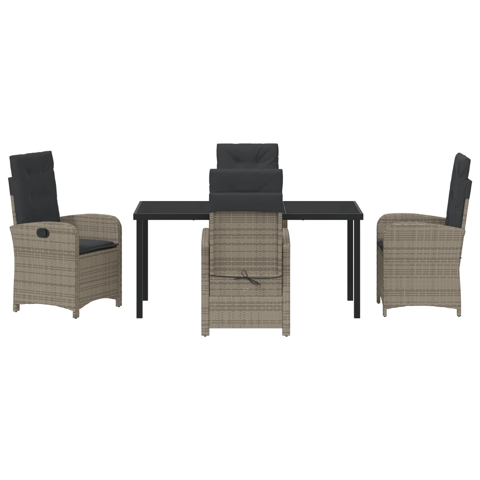 - Funkcionālas sastāvdaļas: Komplekts ietver stikla galda virsmu, kas piešķir eleganci un ir viegli tīrāma. Gludā virsma uzlabo vizuālo pievilcību, padarot to ideāli piemērotu maltītēm vai sapulcēm.