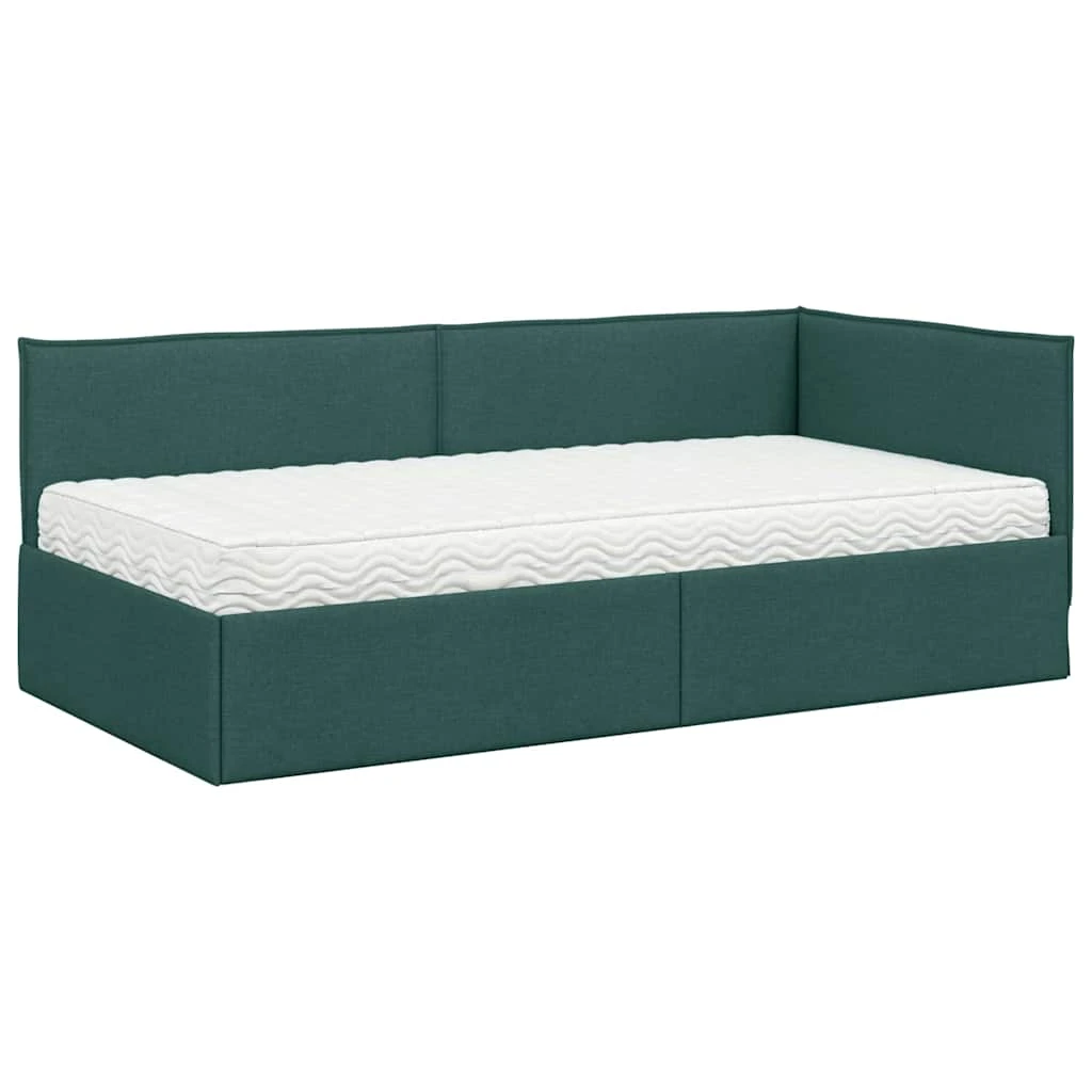 vidaXL Stūra gultas rāmis ar matrači ar galvas klāju 2 pcs Zaļa Samts