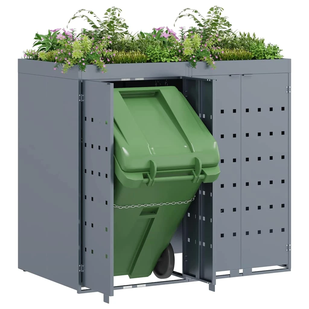 - Pulverkrāsots tērauds Wheelie atkritumu tvertnes glabāšana ir izstrādāta no pulverkrāsota tērauda, kas nodrošina izturību pret laika apstākļiem. Tas ne tikai saglabā to nerūsējošu, bet arī padara zema uzturēšanas risinājumu jūsu dārzam.